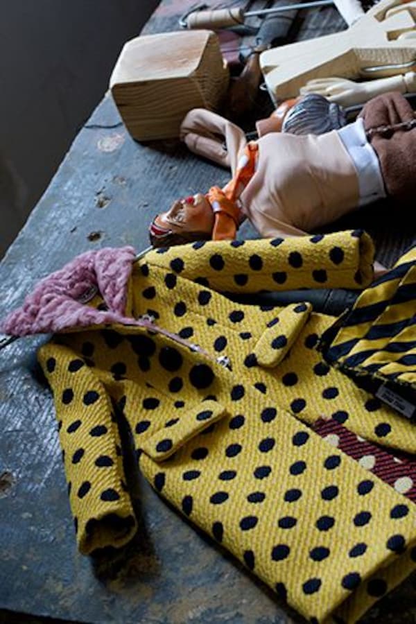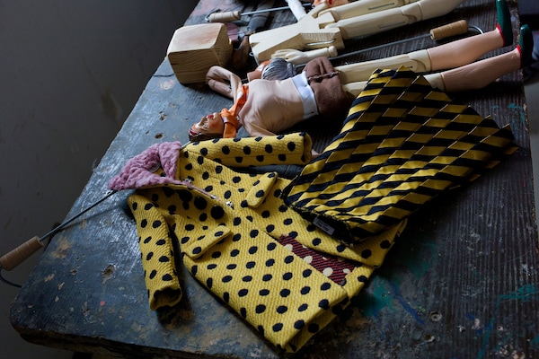 The dressmaker sews in time, creating a mysterious collection of traditional puppet costumes, while the square below comes alive with music and dancing. As a cast of vibrant women rise and join the musicians in a crescendo of spinning polka dots and clapping metallic suede heels the dressmaker looks on, leaving us to wonder who really pulls the strings of this intoxicating fiesta.