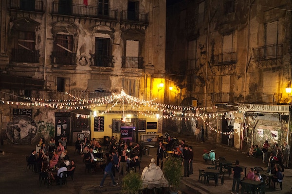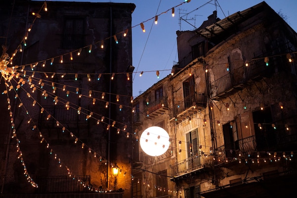 In the Vucciria, the heart of Palermo’s historic old city, strains of quintessentially Italian traditional music drift into a dressmaker’s workshop on the warm breeze, carrying the anticipation of the long summer evening, and perhaps a little magic too.