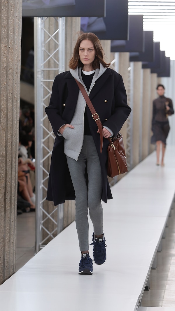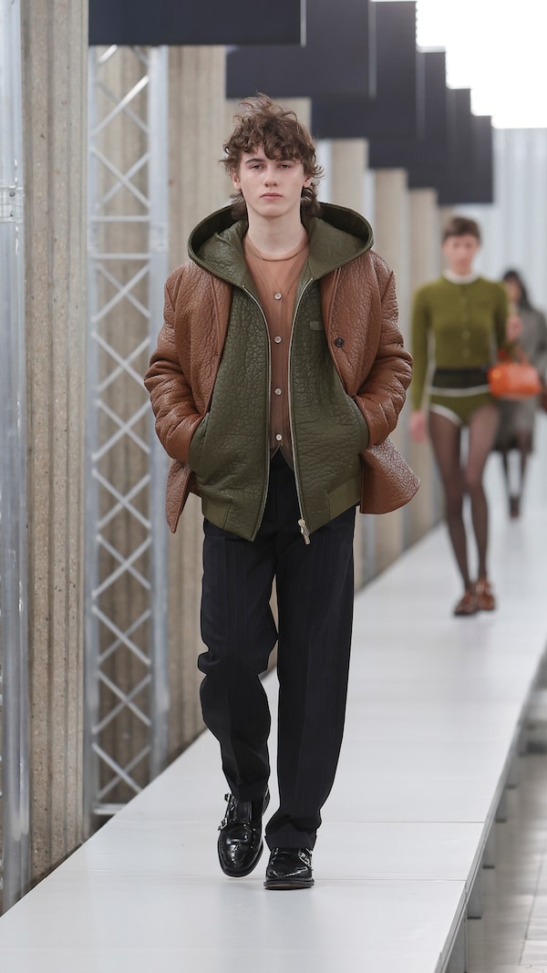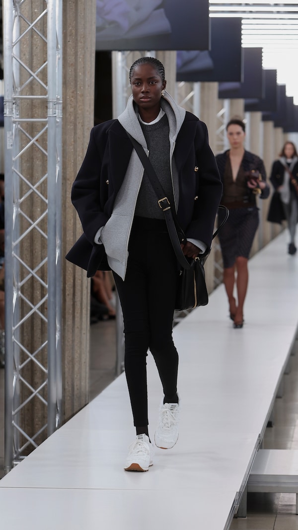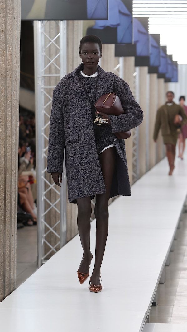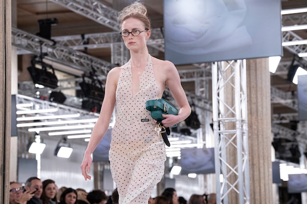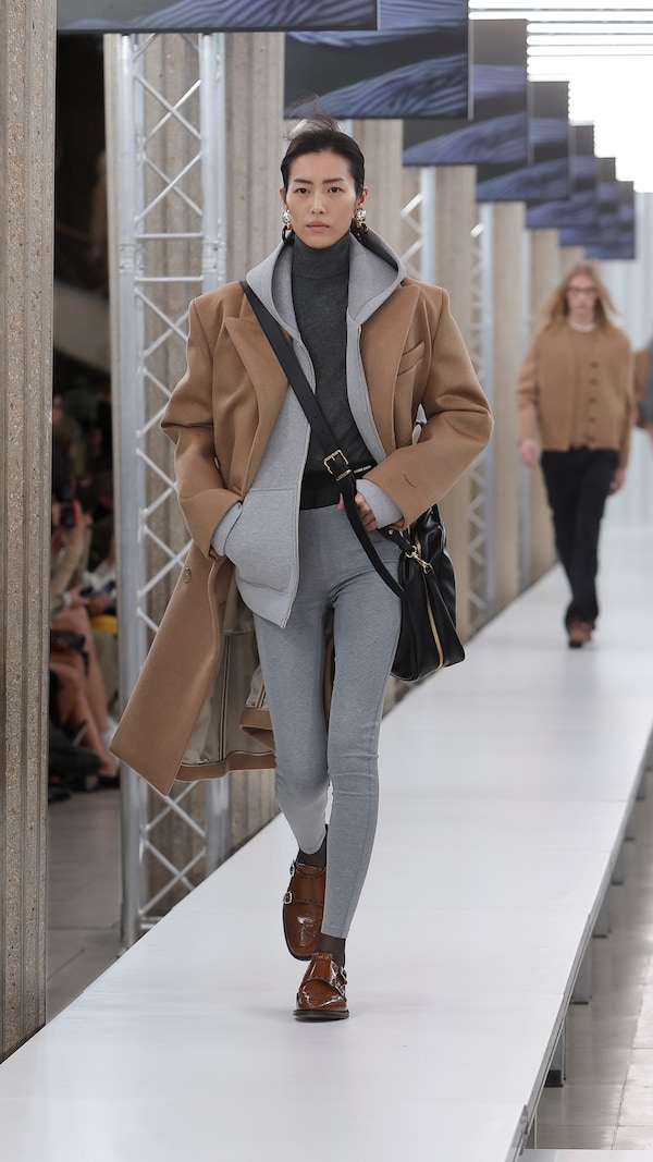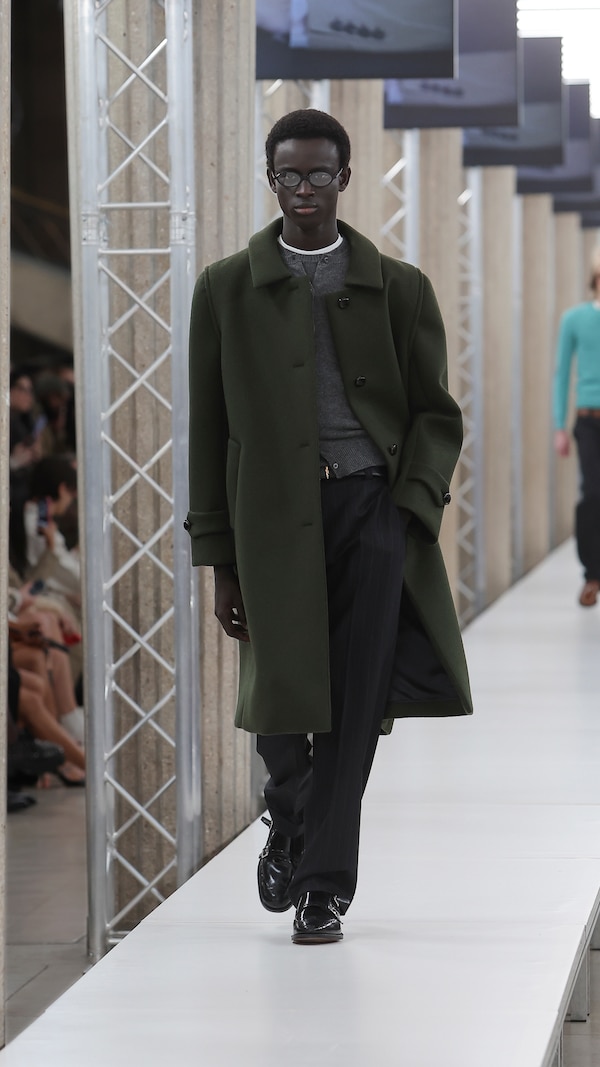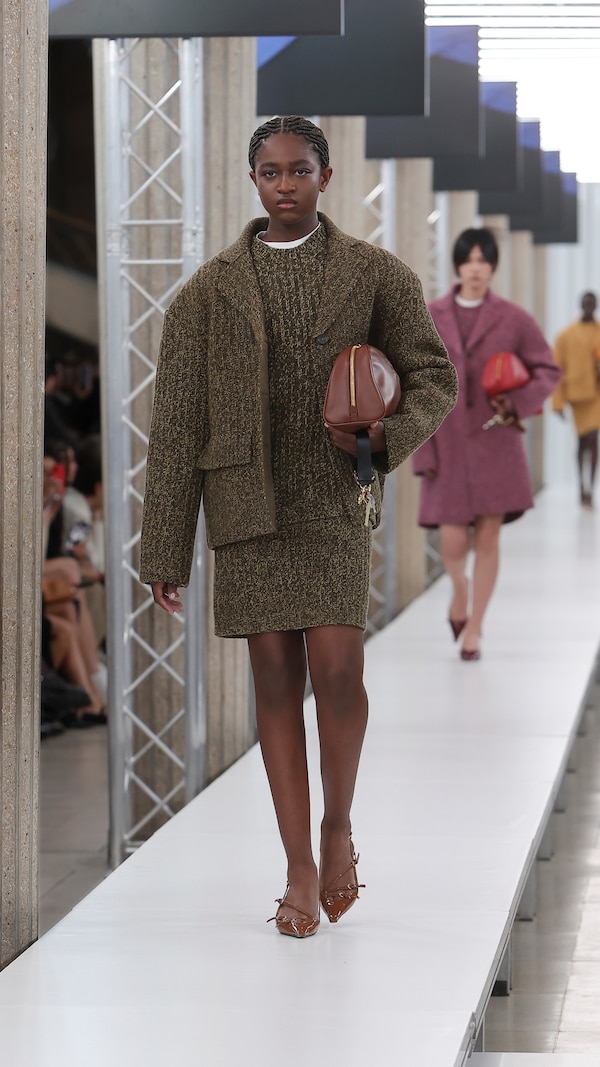 In the Palais d’Iena, models walk on a sequence of raised walkways to aid our observation. Alongside is an installation by South Korean artist Geumhyung Jeong whose performance-based pieces, centered around her body alone, demand an audience. Screens featuring Jeong’s specially-conceived work - examining the relationship between her own body and clothing - form punctuation to the space, inviting and arresting our attention, demanding to be watched.