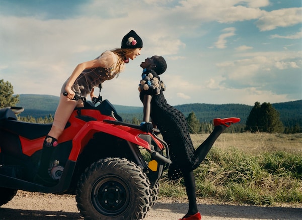 Still and moving images by Eddie Wrey chart these women as they roam through the Paws Up ranch, deep in the Montana state countryside - but the imagery speaks in the plural, unfettered by limitations and boundaries. It is a universal landscape of open skies, wide horizons, infinite possibilities - of idyllic landscapes and elysian fields, of immersion in nature and strength in numbers. Camouflaged in camouflage, laid against rural panoramas of field and forest illuminated by the first blush of summer, these pictures express a yearning for escape, a turn to the natural, a freedom.