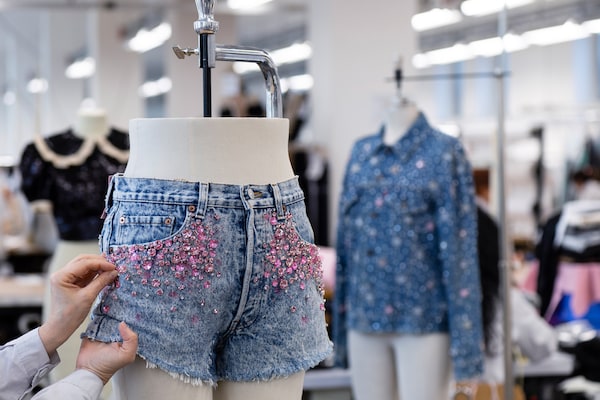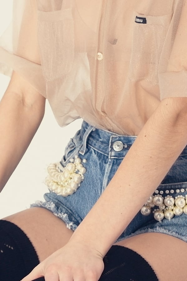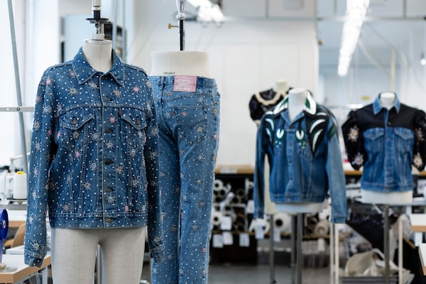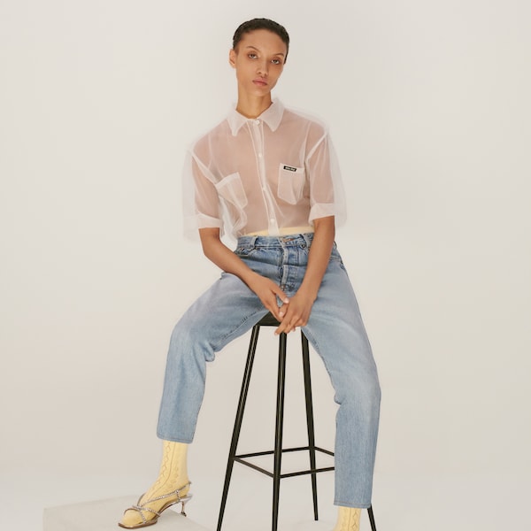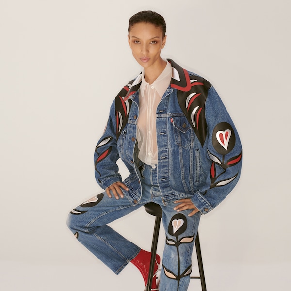 This project includes vintage MADE IN USA men's 501® jeans and Trucker Jackets from the 1980s and 1990s. Born out of American workwear and, from the mid-1950s onwards, a symbol of youthful rebellion, these iconic pieces have been customised and personalised by Miu Miu, in a play between masculinity and femininity. The iconic Levi’s® backpatch is re-invented in Miu Miu pink and carries the brand’s logo alongside.