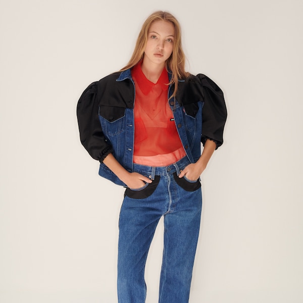 Upcycled by Miu Miu continues to pursue a sustainable ideology, now giving new life to pre-loved denim in collaboration with Levi’s®. A selection of classic denim pieces is re-fashioned by Miu Miu, seen through the brand’s maverick and playful eye.