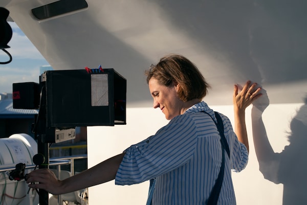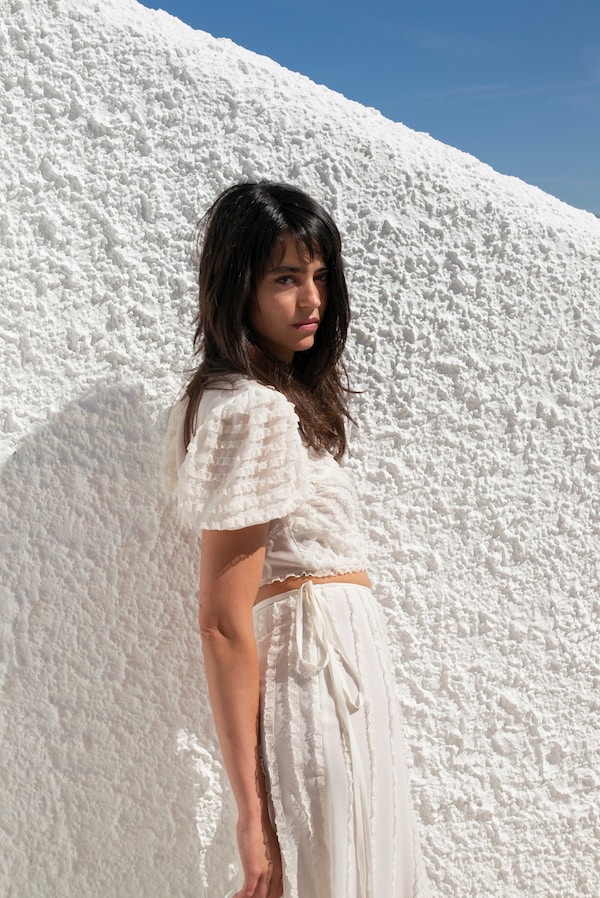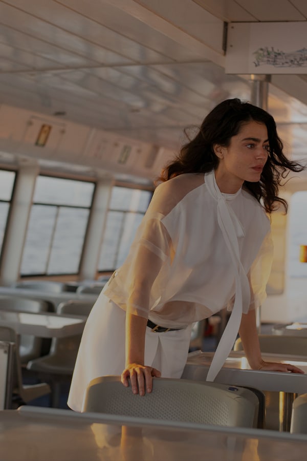“With this film for Miu Miu Women’s Tales, I want to give my son what I didn’t have: a family history.” For Simón, there is a special role that films play in people’s inner lives: “Cinema has the power to repair what is missing.” On the topic of Women’s Tales as a platform for female-led filmmaking, Simón remarks, “It’s very important in the creative process to question things, on set, with your team. I believe women directors are introducing this, and it’s very positive — not just for women, but for men, too”