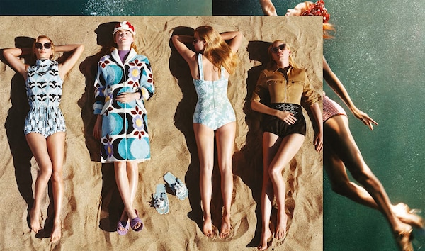 This season the British photographer works with actress Elle Fanning and a cast of women who represent the ever-shifting spectrum of fashion industry visibility: icons Karen Elson, Carolyn Murphy, and Lara Stone appear with slate of new talent. The setting: the proverbial carefree, sun-soaked beach that recalls countess summer films from ‘Il Sorpasso’ to ‘Beach Blanket Bingo’. But beneath the sunny surface, “Suddenly Next Summer” continues Miu Miu’s interrogation of contemporary femininity and nebulous terms like actor, it girl, model, and celebrity.