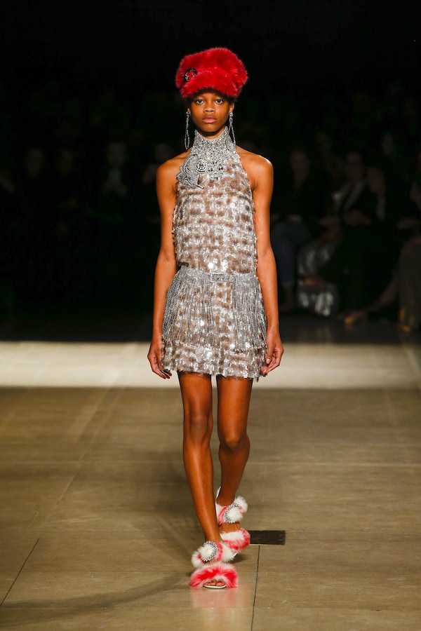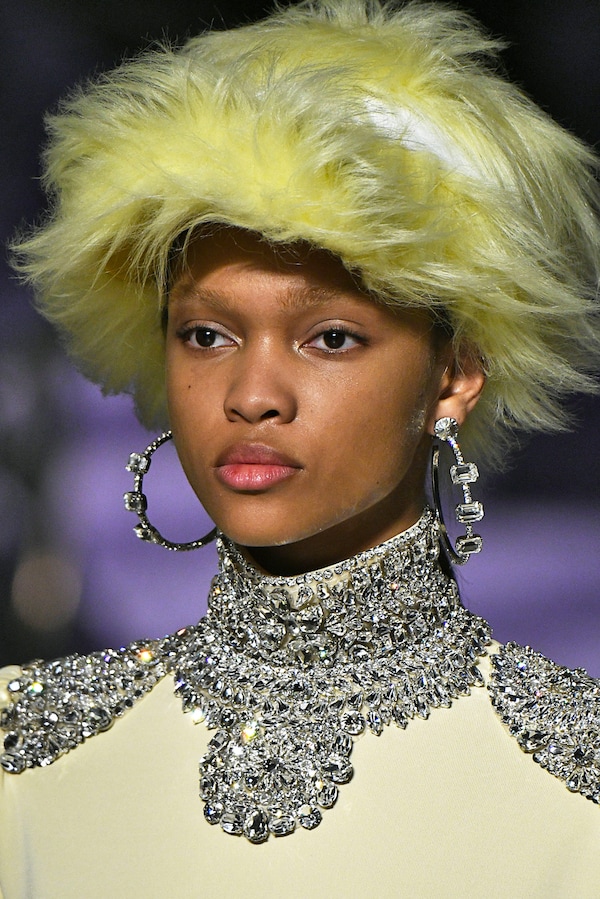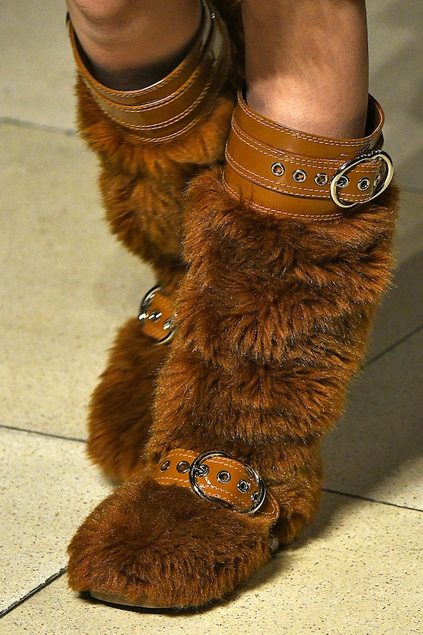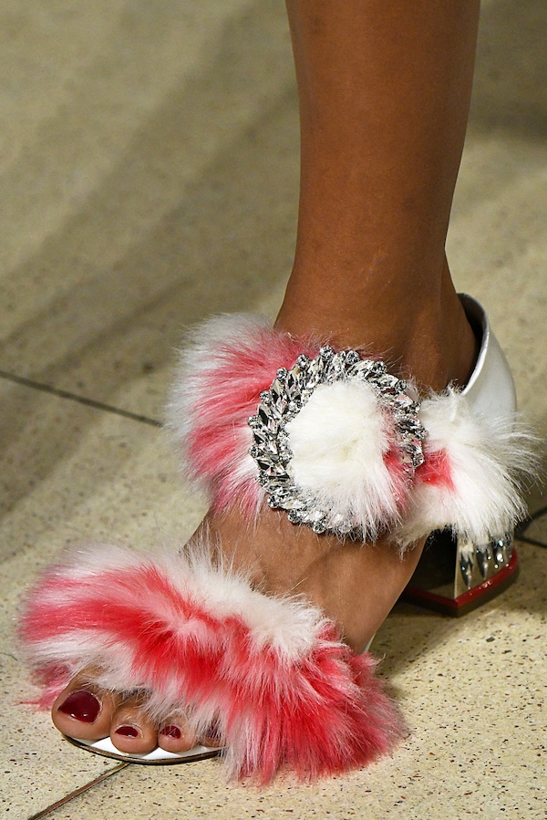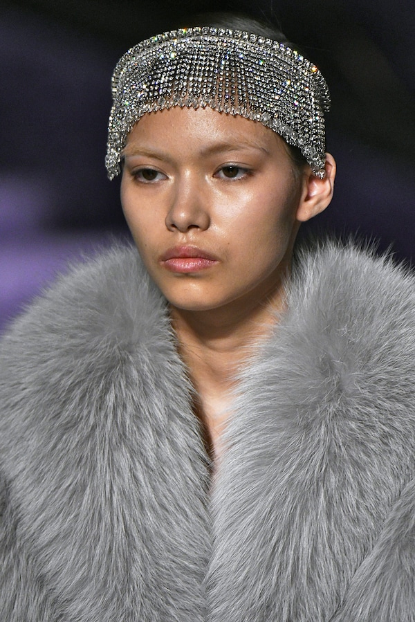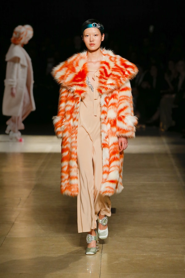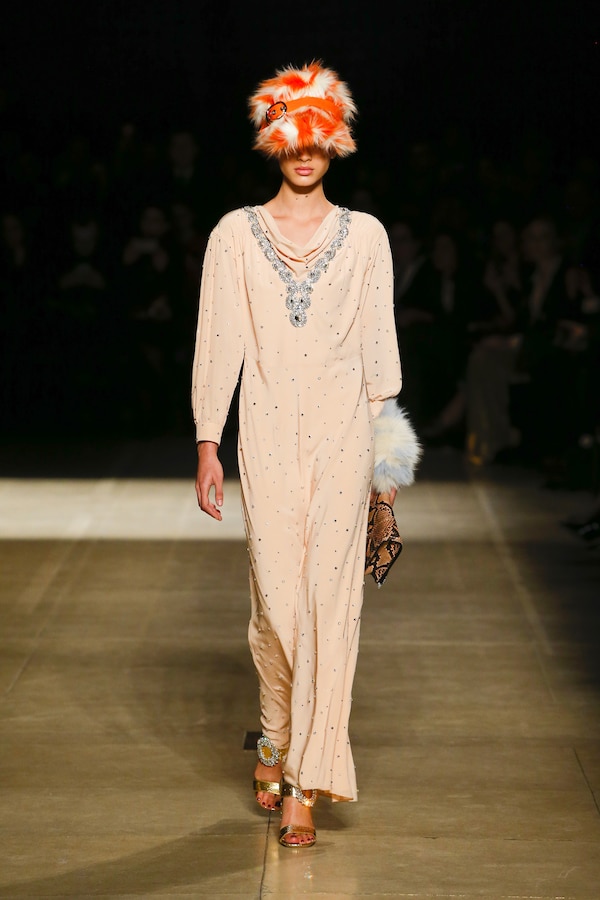 The show begins with an ironic reinterpretation of the monumental staircase in the ‘salle hypostyle’ whose details, from handrail to columns and stairs, are accentuated by an elegant layer of eco-fur.