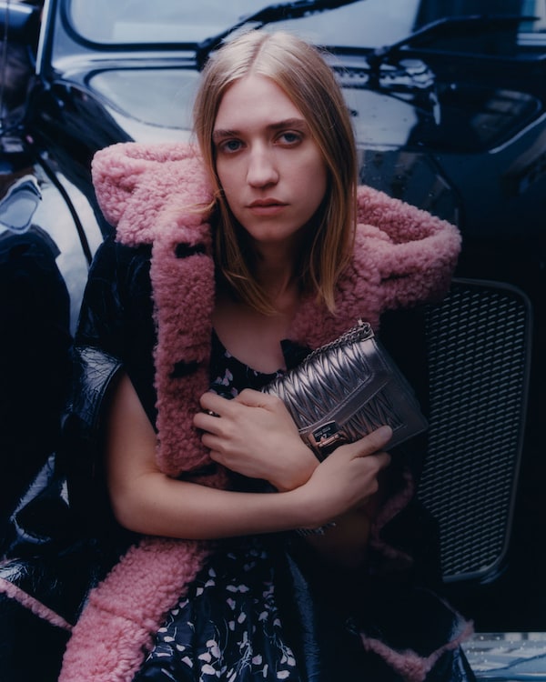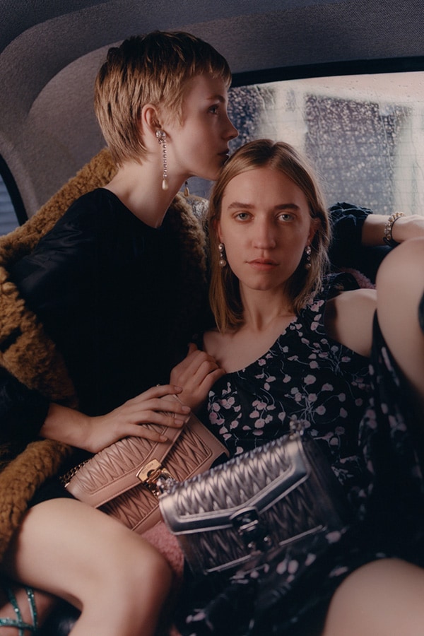 The irreverent, insouciant and effortlessly edgy young actress Coco Gordon Moore is the star, the quintessential Miu Miu Girl, alongside a supporting cast of Lucan Gillespie, Mitch Greene, Hannah Shakespeare, Honey Stavonhagen and Chen Xue. Yet the limelight is grabbed by the ‘voice’ of the Miu Confidential, our films’ unconventional heroine. The Miu Confidential doesn’t confess quite all its owner’s secrets … but as our protagonist it lets us know the reality behind Coco’s take – letting us in on her secret rebellions and subversions, her tricks and truth-bending. Whether at the beauty parlour, in a book club, or even inside a taxi, the Miu Confidential is simply a bag that cannot tell a lie.