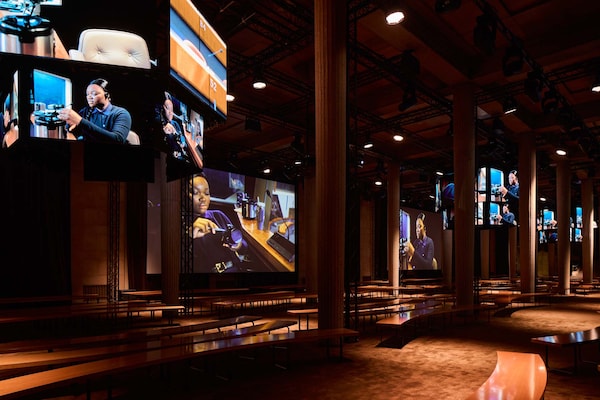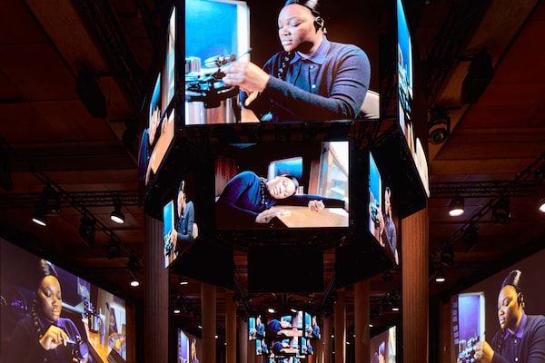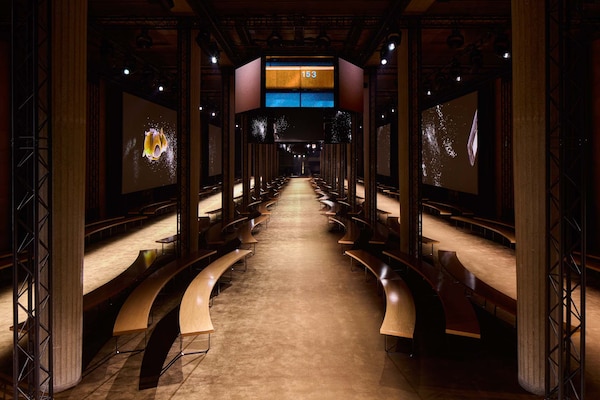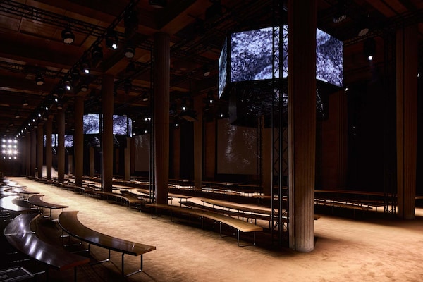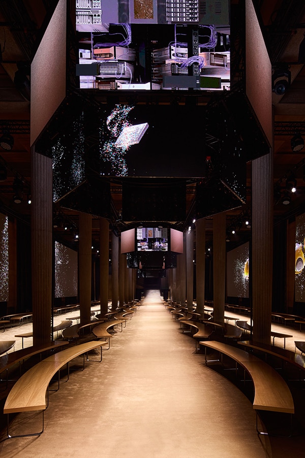 Contemporaneity allows divergent creative processes to arrive at paradoxically correlated results. The Palais d’Iéna is punctuated by video installations created by the Belgian-American artist Cécile B. Evans, art considered as a tool to enrich and expand conversation around people. Conceived independently of the collection, by chance the notions of the survival of memory in their art finds echo within the clothes. This is a shared language, one informed by the moment we all live within, a universal message nevertheless resonant with our unique experience.