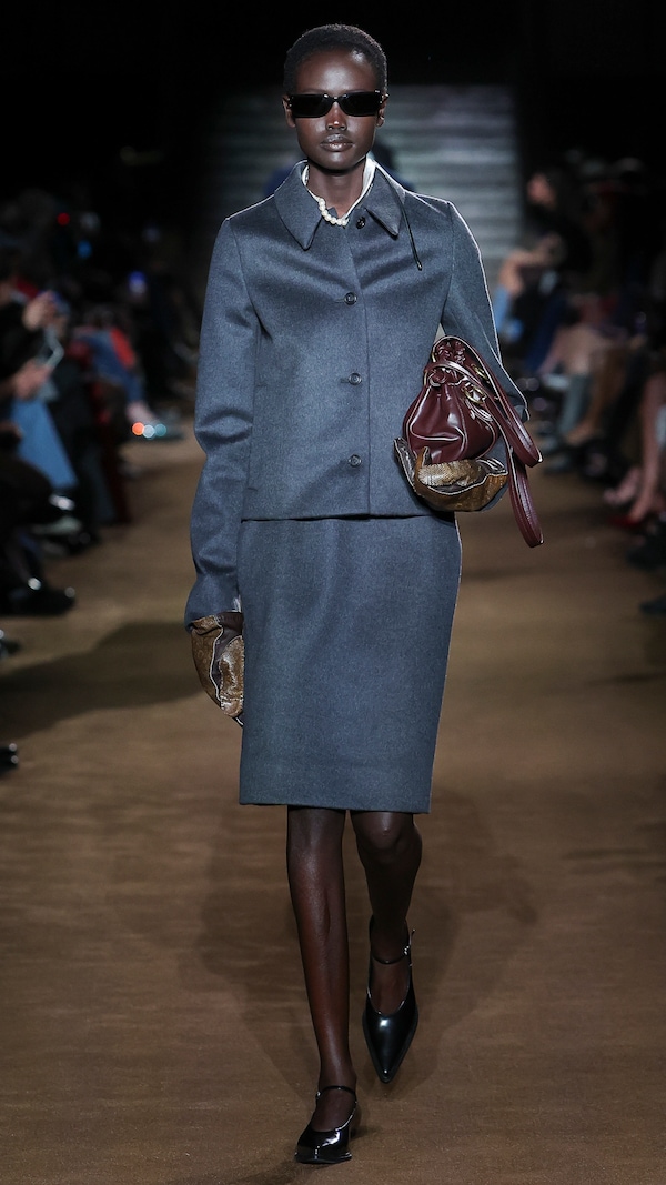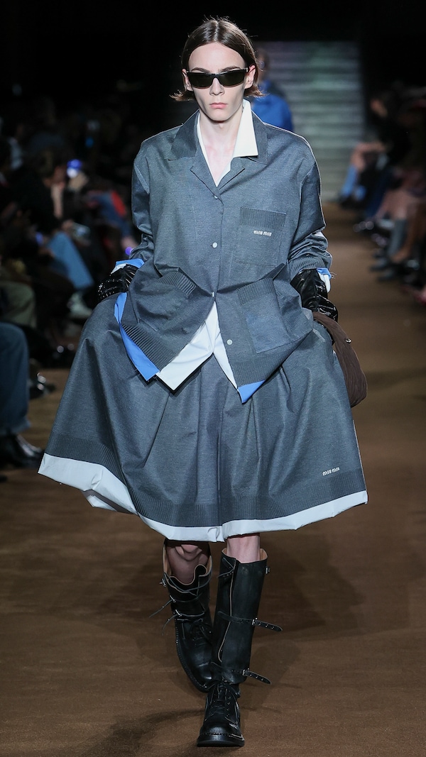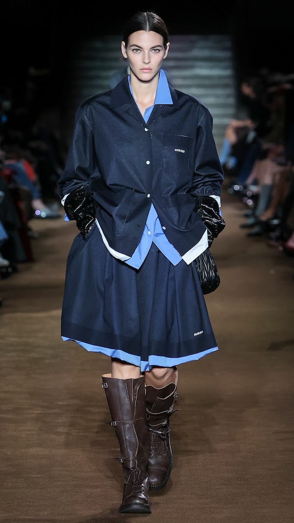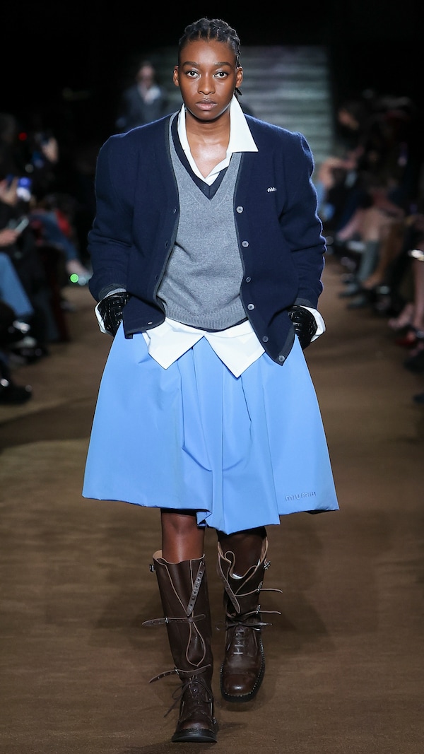 A vocabulary of clothing, from childhood to adulthood. The Miu Miu Fall/Winter 2024 collection by Miuccia Prada draws inspiration from the span and scope of people’s lives, its shifting clothing types reflective of the development of character, both personal and universal.