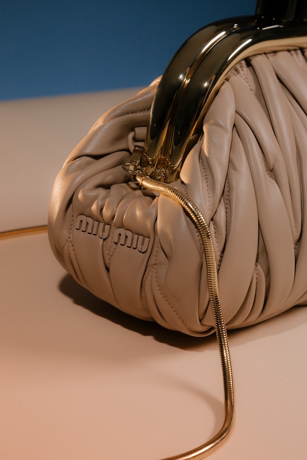New for the Fall/Winter 2020 season, in its fabrication and appearance the Miu Belle bag brings together many of Miu Miu’s most distinctive signatures.