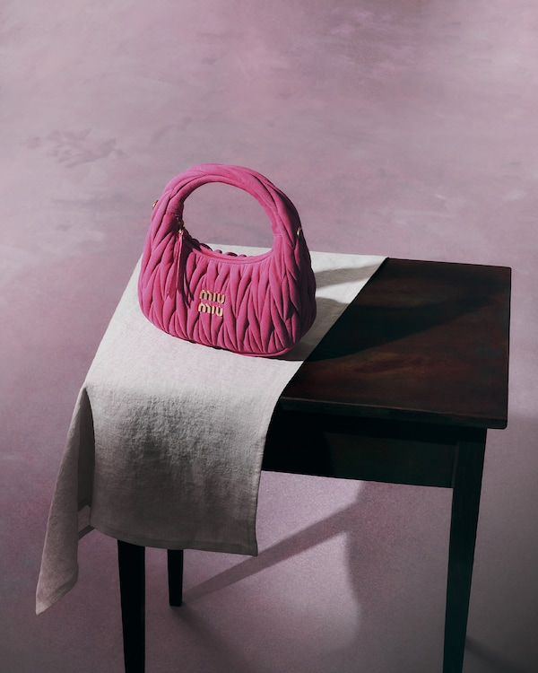 Reflecting the new suede of the Miu Miu matelassé - showcased in the Wander and Arcadie handbags - these gentle images have a tactile, velvety quality, a true softness.