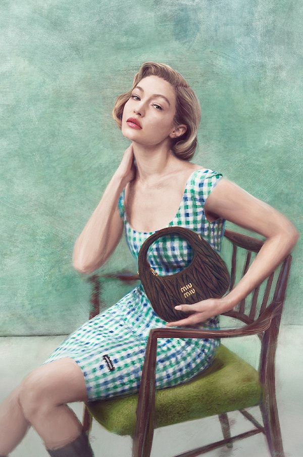 Poised portraits, posed – the new Miu Miu campaign, starring Gigi Hadid, immortalizes both the brand’s emblematic matelassé and the women who hold it, through timeless imagery inspired by classic high society portraiture of the 20th century.