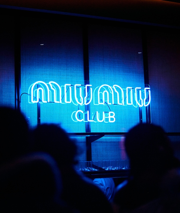 Fin dal suo debutto a Londra nel 2012, il Miu Miu Club ha l'obiettivo di riunire comunità di donne indipendenti, promotrici dell'espressione individuale e unite nella passione per moda e cultura in tutte le sue forme. Un salone dal design contemporaneo crea un ambiente in cui il singolo diventa collettivo. Miu Miu Club è uno spazio intimo e glamour in cui le donne possono celebrare la propria identità, abbracciare la loro complessità e scambiare e sviluppare idee.