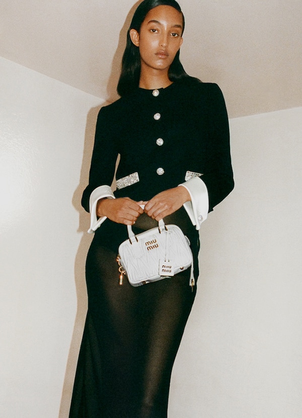 Las creaciones de la colección ponen de relieve la idea de que la moda haga las veces de uniforme, siempre dispuesta a servir, pero también a enriquecer gracias a su carácter ambicioso, atrevido y divertido: unas sandalias desnudas con un tacón brillante, unas bailarinas flexibles cuajadas de oro, un bolso icónico, grande o pequeño, en un blanco inmaculado, el negro más intenso o en colores reflectantes, o una romántica perla en un nido de latón pulido. La propia identidad, única e irrepetible, aflora en los opuestos y en los deseos más íntimos y privados.