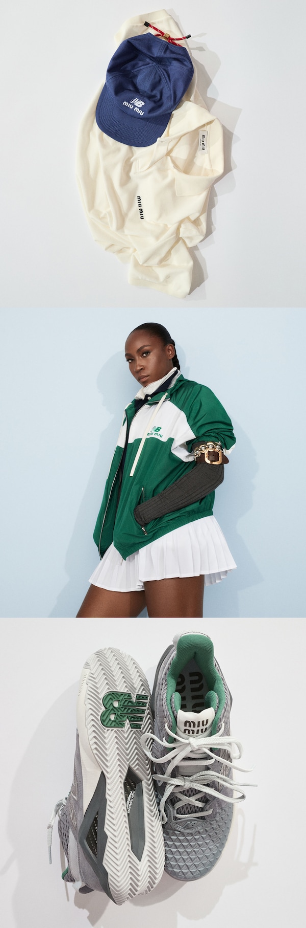 La colaboración New Balance X Miu Miu continúa de la mano de la inspiradora tenista estadounidense Coco Gauff, que vestirá ropa y calzado de New Balance X Miu Miu durante los torneos de Roma (del 7 al 18 de mayo), Berlín (del 14 al 22 de junio) y Cincinnati (del 5 al 18 de agosto), tanto dentro como fuera de la pista. Una selección de accesorios firmados por ambas marcas completa la oferta y consagra la colaboración.
