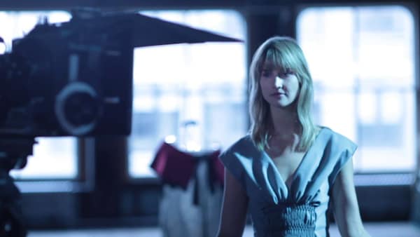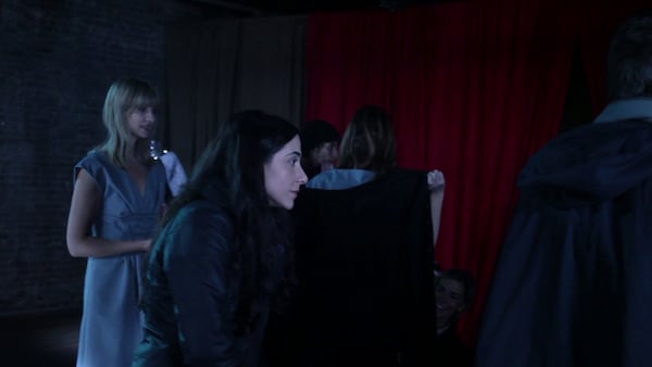 The film, featuring key dresses from Miu Miu, draws on a surreal cinematic language, with its red velvet curtain, reverse-speak and dreamlike mise-en-scène.