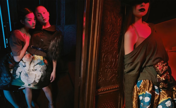Cherchant toujours à illustrer une féminité multifacettes, Miuccia Prada a choisi d’exprimer sa vision au travers de trois femmes asiatiques très différentes : Zhou Xun, rebelle et gracieuse, originaire de Chine ; Dong Jie, plus secrète et modérée, également originaire de Chine ; et Rina Ohta, originaire du Japon, qui détient la clé de la jeunesse, se laissant bercer par le moment. Ensemble, les trois jouent à associer et opposer une élégance innée et une fragilité distinguée, une sexualité ingénue et espiègle, une sensualité attirante et une puissance digne d’une guerrière.