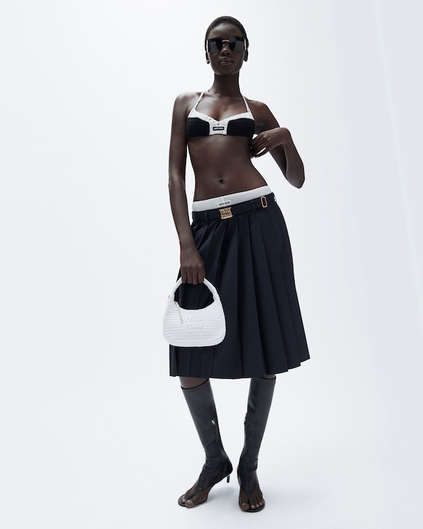La collection Miu Miu L’Été propose un dressing contemporain, inspiré du charme des sous-vêtements qui deviennent apparents, de l’élégance de la mode masculine et du confort du sportswear, le tout dans un style épuré.