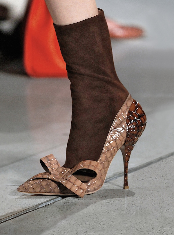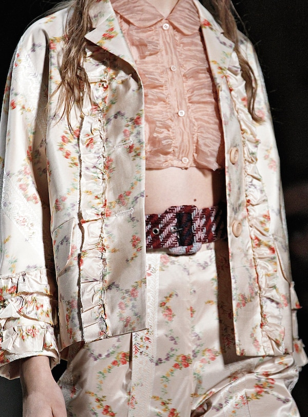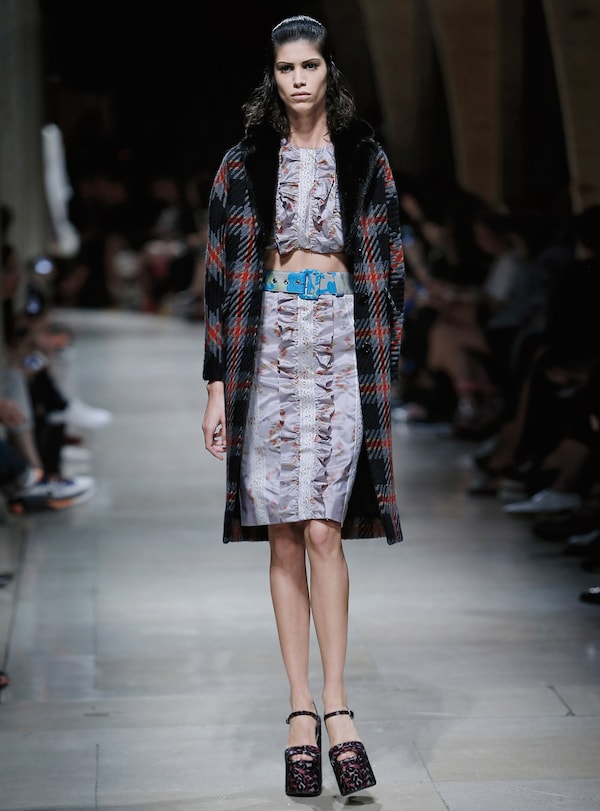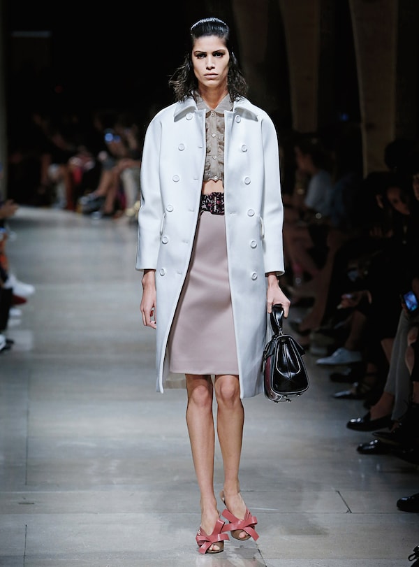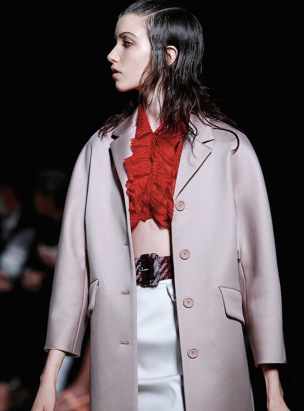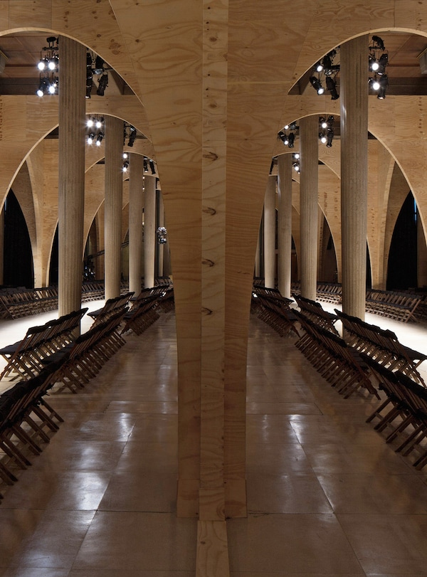 La linéarité de cette stratégie est cassée par un podium ovale, qui génère différents rapports entre les éléments qui composent le défilé. Le matériau prédominant est le bois, qui contrebalance en douceur la célèbre structure en béton renforcé d’Auguste Perret.