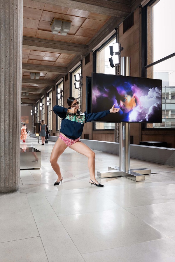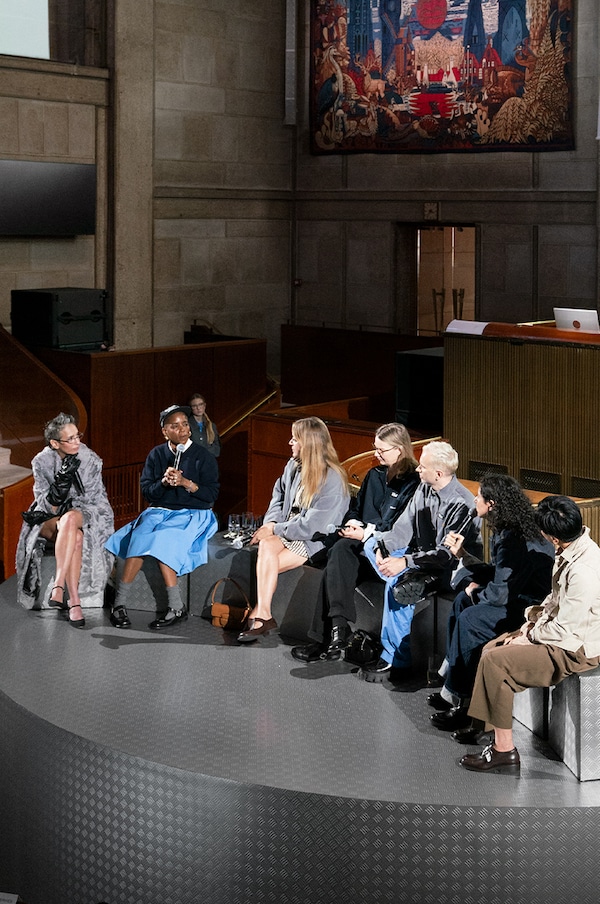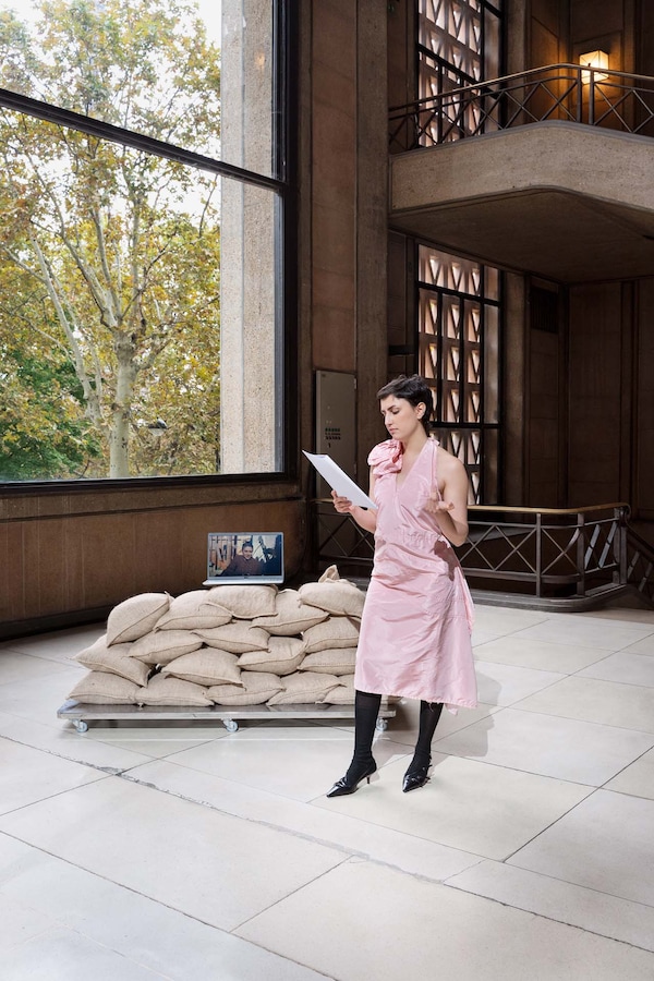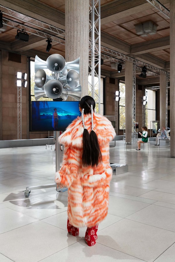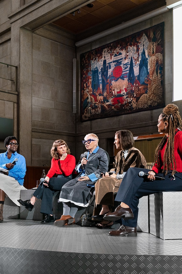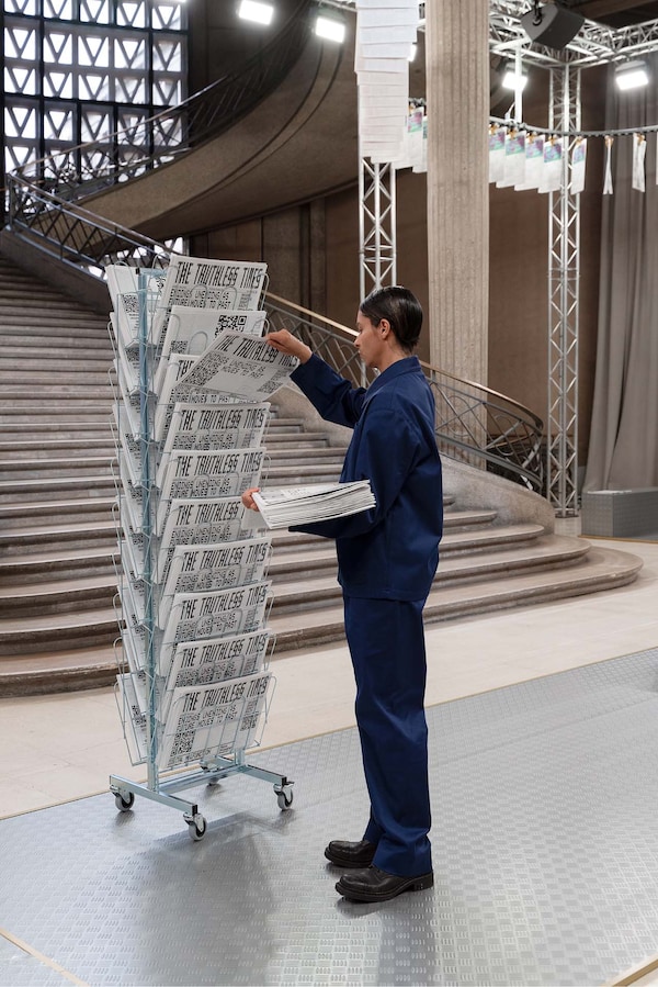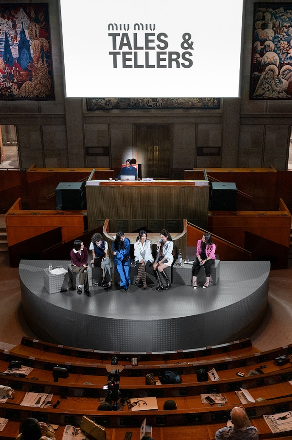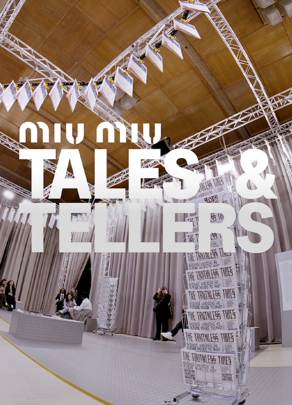 Miu Miu était le partenaire officiel du programme public de l’Art Basel Paris avec « Tales & Tellers », un projet conçu par l’artiste pluridisciplinaire Goshka Macuga, curaté par Elvira Dyangani Ose, directrice du MACBA, le musée d’Art contemporain de Barcelone, et présenté au Palais d’Iéna du 16 au 20 octobre 2024.