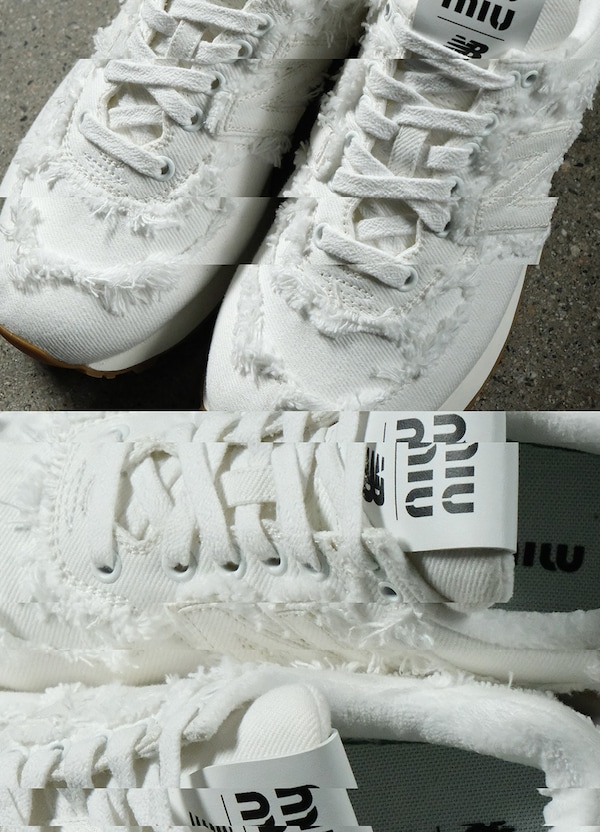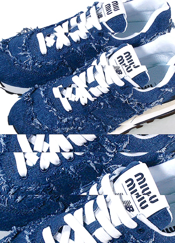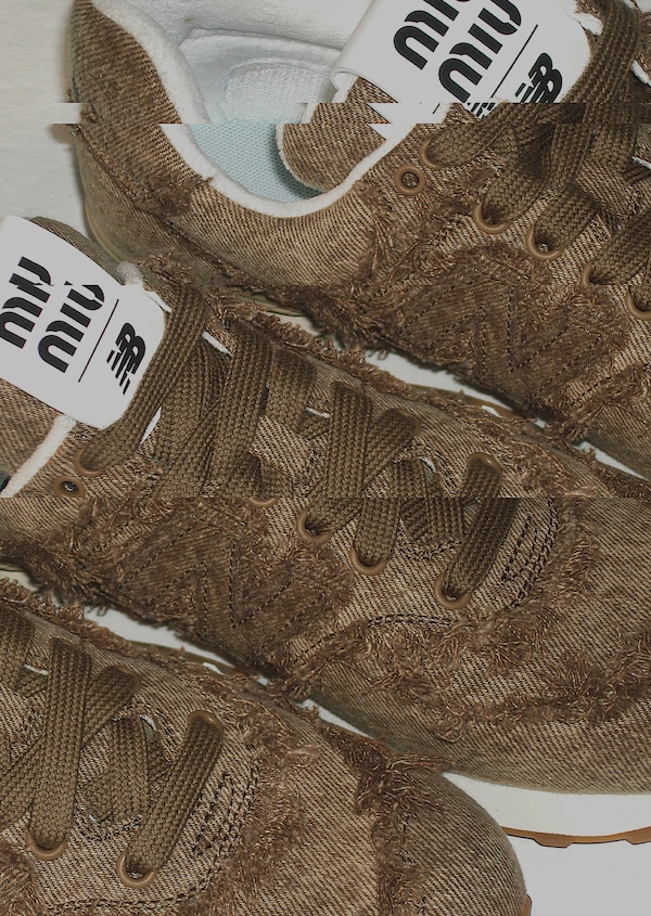 Présentée pour la première fois sur le défilé de la collection Miu Miu Printemps/Été 2022, l’iconique basket 574 est de retour dans de nouvelles versions : en denim à franges bleu et cognac avec un effet marbré ou en cuir nappa blanc vintage. Chaque version revisite la silhouette populaire des années 1980 avec une approche contemporaine, imprégnée de la vision vibrante et dynamique de la féminité selon Miu Miu. Les deux logos se démarquent en contraste sur la languette et viennent sublimer le modèle unique et original. Les concepts de déconstruction et de reconstruction régissent la réinvention de plusieurs classiques du dressing pour un résultat surprenant.