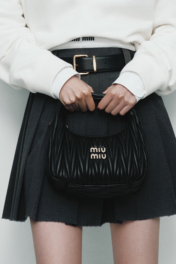 Vêtues de l’uniforme urbain de notre époque, les deux protagonistes incarnent le design charismatique de Miu Miu.