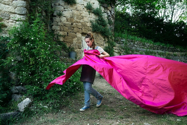 « Mademoiselle Jasmine ! J’ai un paquet pour vous ! » L’adolescente de 14 ans qui porte un appareil dentaire arrête de traire la chèvre. Le facteur est venu lui apporter une surprise. Elle ouvre le colis et en sort une sublime robe de bal magenta qui fait dix fois sa taille. « Je suis curieuse », dit-elle avant d’entrer dans les plis de la robe. De là, l’obstinée, la rêveuse, la réaliste Jasmine nous entraîne dans un anti-conte de fée moderne à travers les grottes et les stalagmites, les rues et les vitrines, les obsessions et l’émancipation du quotidien.