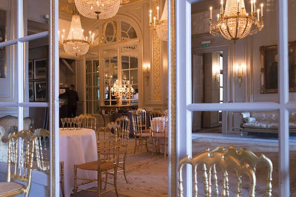 The location was the Parisian seat of the historical Automobile Club de France—the world’s first automobile club—reinterpreted by AMO. Originally founded in 1895, the club was moved several years later from a location near the Paris Opera to an august site on the Place de la Concorde originally designed by the preeminent Ange-Jacques Gabriel for King Louis XV and reimagined by Gustave Rives, a French architect known for his “opulent eclecticism.”