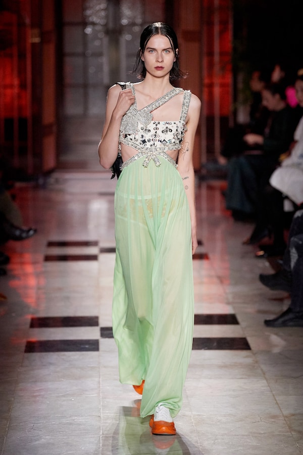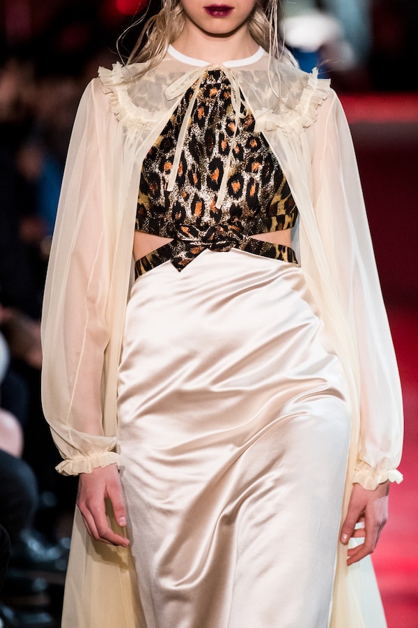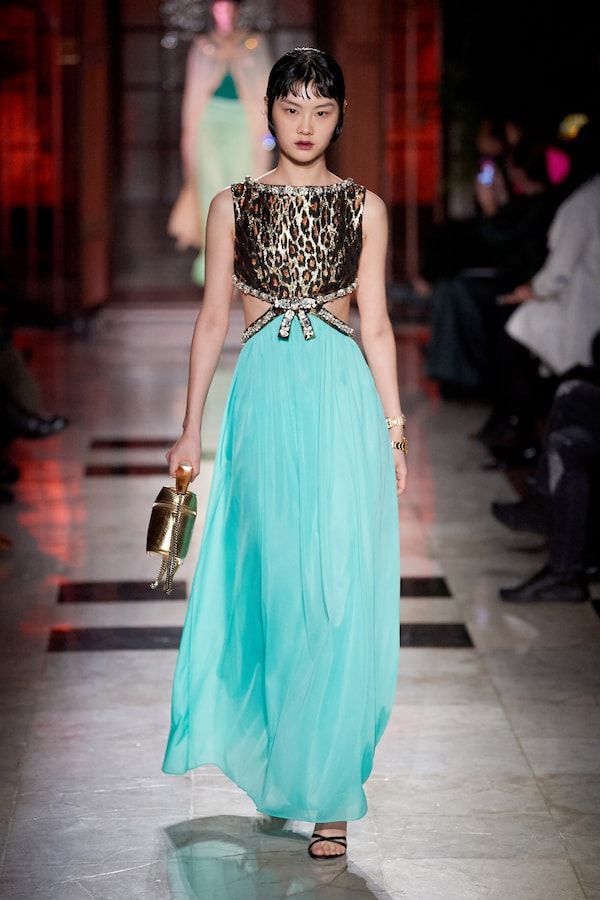 As the revolving doors of the Hotel Regina swing shut, the collection flits from Belle Époque Paris to Shanghai of the ‘30s and ‘40s, translated across time and space from the decadence of the West to the gilded glories of the East.