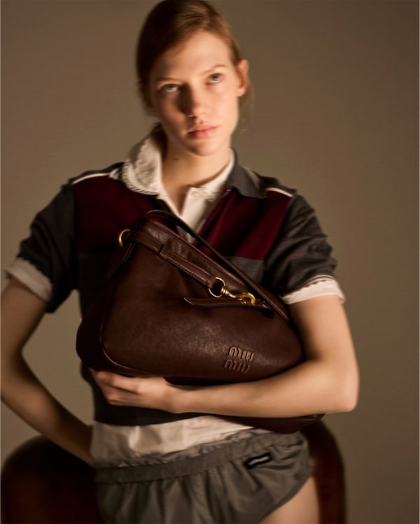 Iconic bags, including the Wander, Arcadie, Aventure and Beau, in smooth, woven and matelassé leather, as well as sturdy canvas, accented with sporty piping and in a special new color, astral, have been created especially for the occasion. Also exclusive are iterations of the Pocket bag, revisited in more formal leather, and Miu Miu backpacks, integral to the sportswear world. Plume, Tyre and Gymnasium sneakers are fresh from the runway, and here too is the new Boxeur style, available for the first time and online only.
