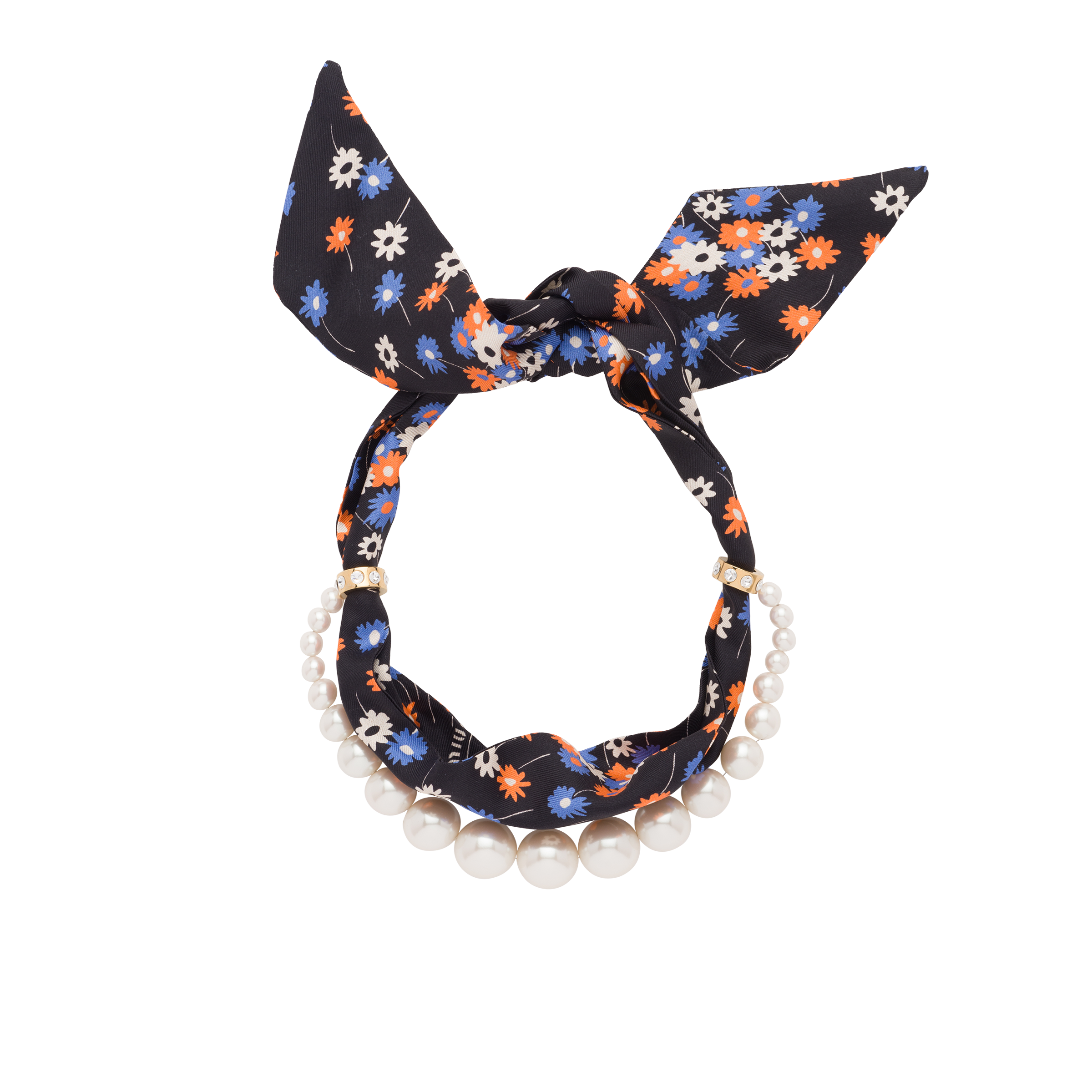 印花絲質搭帶及人造珍珠串,飾以人造水晶