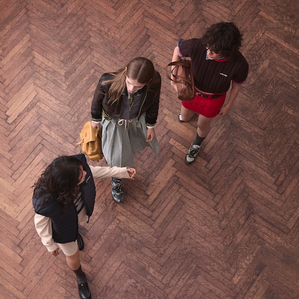 精选配饰完善整体造型。浓郁色调的亮面皮革金币乐福鞋唤起二十世纪中叶校园风情;软羊革芭蕾平底鞋以柔美姿态演绎大胆而精致的韵味;Gymnasium运动鞋兼具舒适性与活力感,亦彰显态度,完美契合快节奏生活。