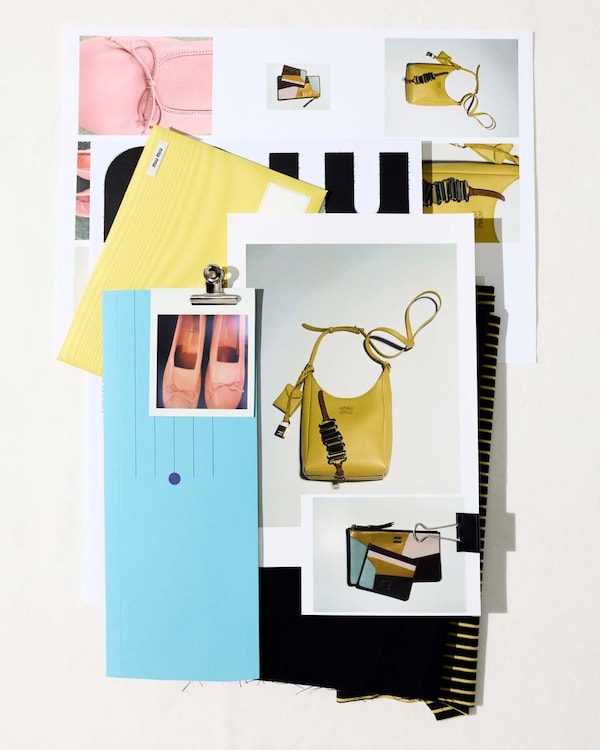 手袋更为系列增添层次感。标志性款式包括兼具实用性与时尚感的Pocket系列手袋,将其独特的功能性设计与多功能双肩背包相融合——特别为此次活动推出迷你双肩背包款,以及一款全新色块拼接皮革手袋,采用拼贴工艺打造,使材质更为丰富多样;此外,还有来自最新Miu Miu秀场的Solitaire手袋和一款全新保龄球手袋。Matelassé软羊革为系列增添华彩,格纹图案则呼应了服装面料。