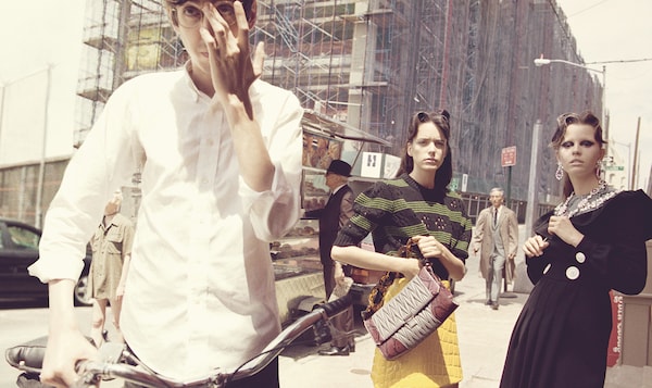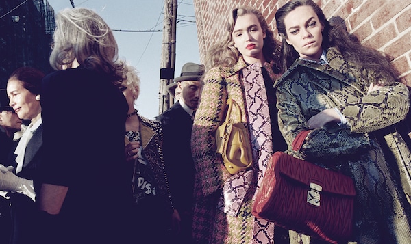 Quella ricercatezza non studiata nell'immagine catturata furtivamente è evidente nelle fotografie di Steven Meisel con Maddison Brown, Hailey Gates, Mia Goth, Stacy Martin per la campagna Miu Miu Autunno/Inverno 2015. Che la campagna abbia un titolo, Subjective Reality, e che ogni singola immagine sia sottotitolata, è significativo. La logica compositiva e prospettica apparentemente disinvolta suggerisce uno sguardo estremamente soggettivo: un passante viene immortalato a metà di un gesto, il finestrino di un’auto inquadra parzialmente la strada, gli sfondi sono popolati dai drammi quotidiani della gente. Le attrici incontrano quello sguardo, a tratti quasi provocatoriamente, come se venissero interrotte a metà frase dall’obiettivo invadente del fotografo.