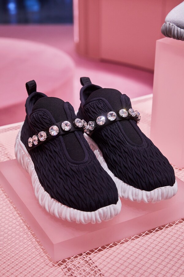 스니커즈와 함께 더 많은 크리스털로 장식한 가죽 백 셀렉션도 선보일 예정입니다.