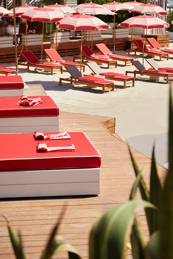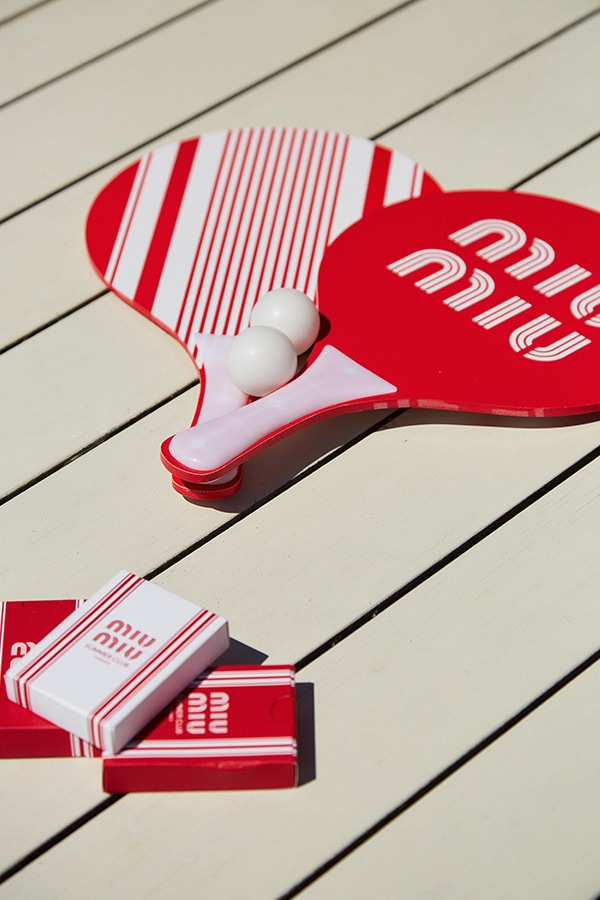 Beach area, decking, games and food carts were all customized with vintage-inspired beach-side stripes and instantly recognizable Miu Miu branding.