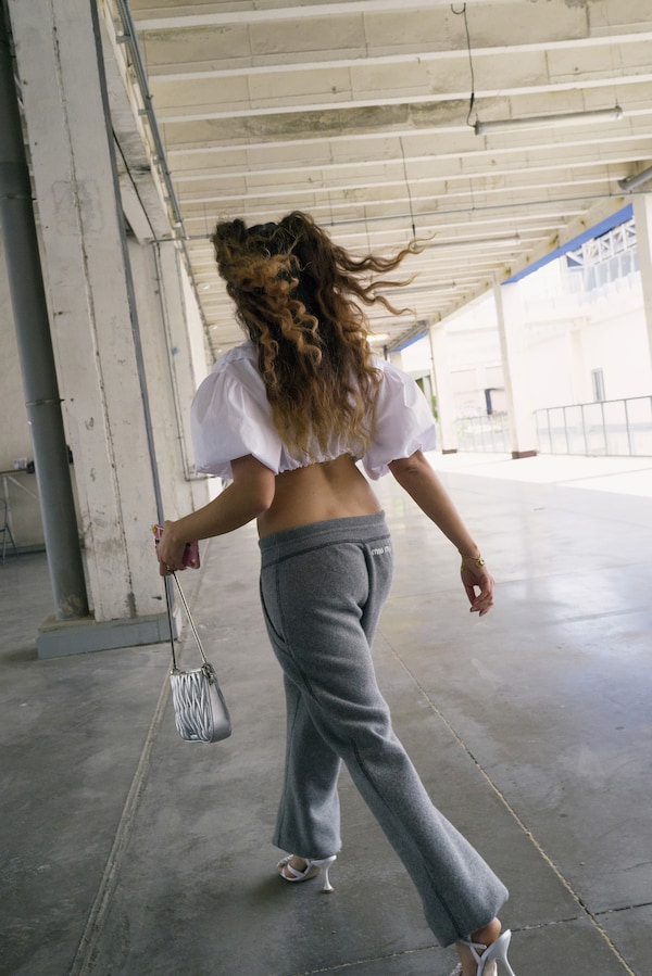 “I wanted to create an impossible love story,” says Kaouther. “The girl in my story is very empathetic,” she continues, “whereas the boy sees everything from his own perspective.” Kaouther’s film explores the breakdown of communication between these divergent personality types. The way Nora is dressed in her Miu Miu apparel is fundamental to the character’s story arc. “Nora has sex appeal, she wants to be cool. When she’s stopped by Kevin, her costume doesn't help her. I love this contradiction.” Kaouther adds, “Costumes are a very powerful tool in cinema, like scenery and lighting.”