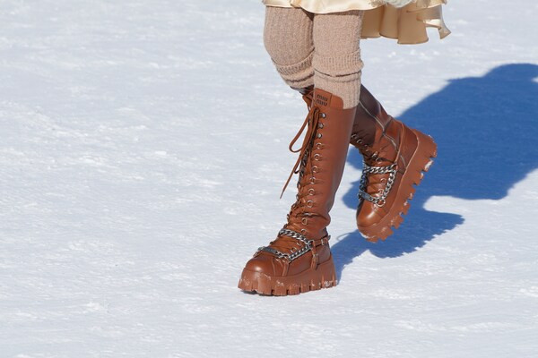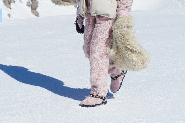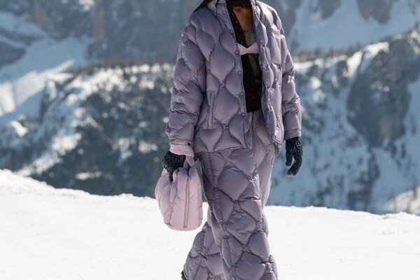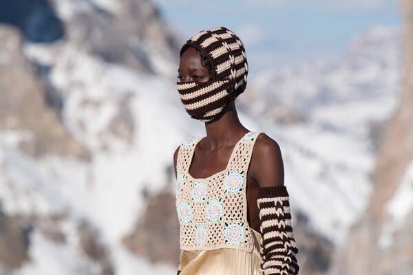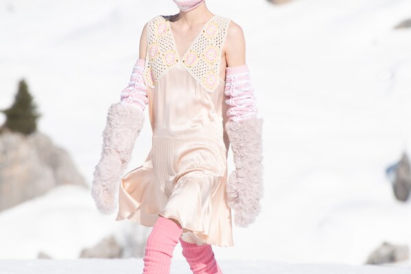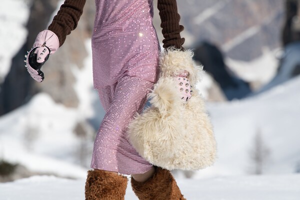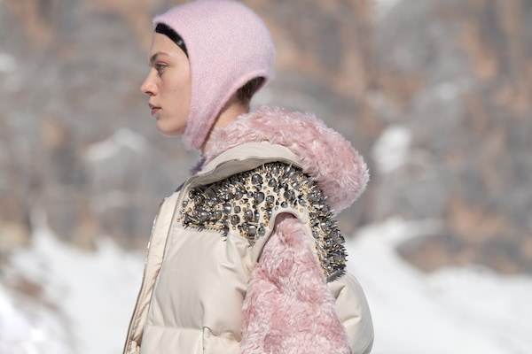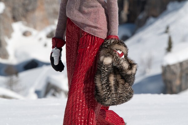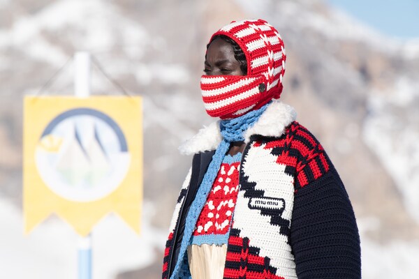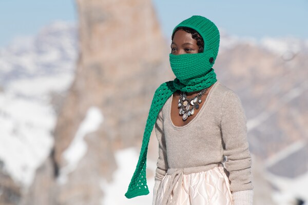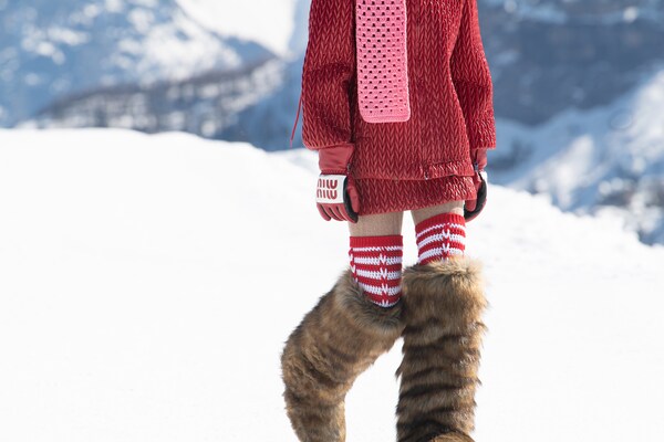 Un voyage à travers les montagnes – un défilé de mode dans la neige. Un « club de montagne Miu Miu » de rêve est créé, les mannequins explorant le paysage de Cortina d’Ampezzo, au cœur des Dolomites, immortalisées sur pellicule dans une entreprise courageuse et difficile. Il s’agit d’évasion, de rêverie : de faire du fantasme une réalité.