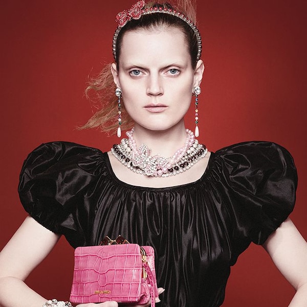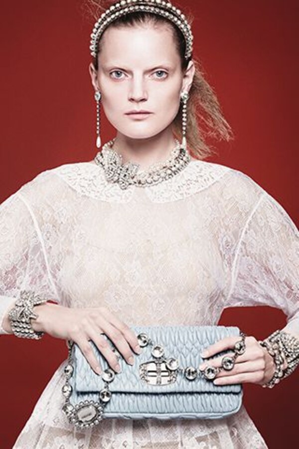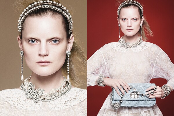In the Miu Miu Croisière 2012 advertising campaign, the delicate but strong essence of the Miu Miu woman is portrayed by Guinevere van Seenus.
