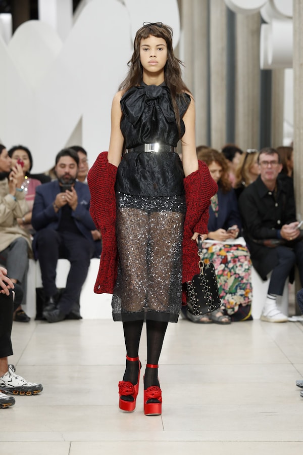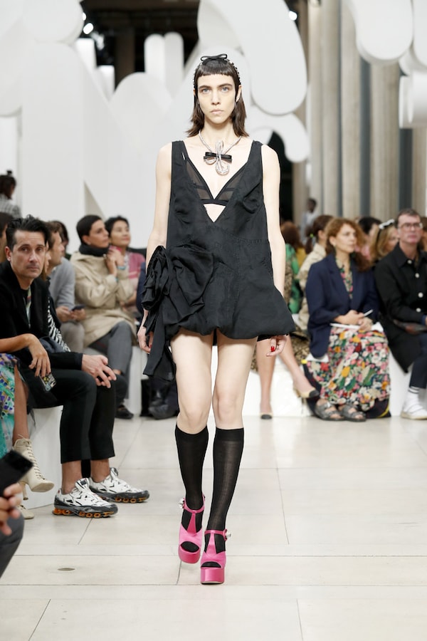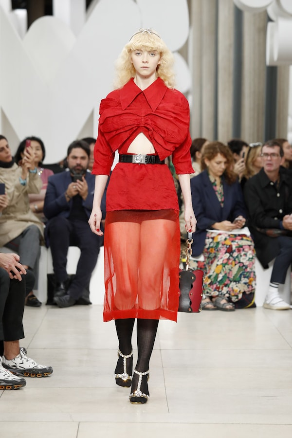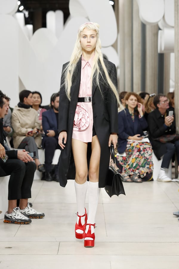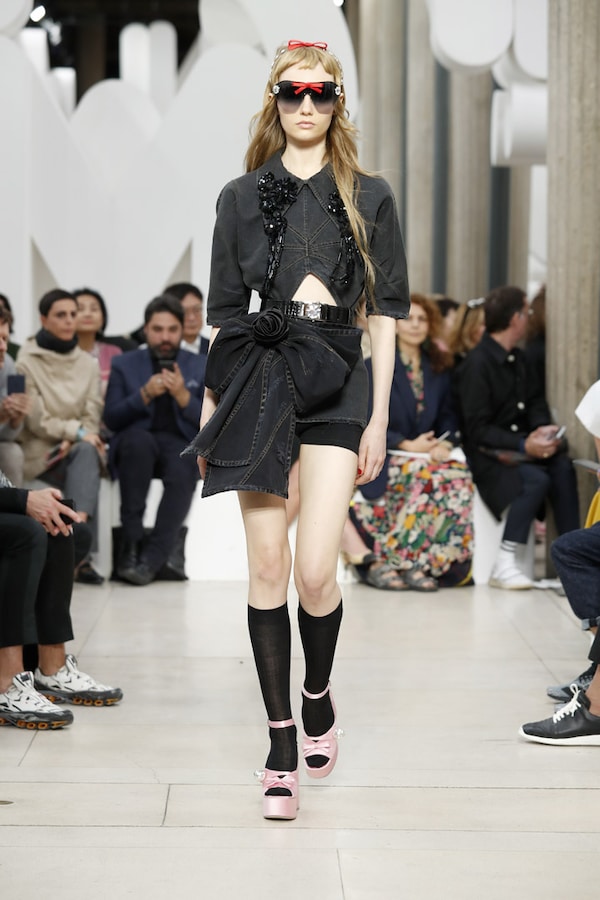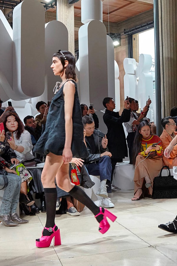 L’espace fait l’effet d’une tautologie : le défilé, au sein du défilé, au sein d’un symbole, au sein d’une marque - le cœur de MIU MIU.