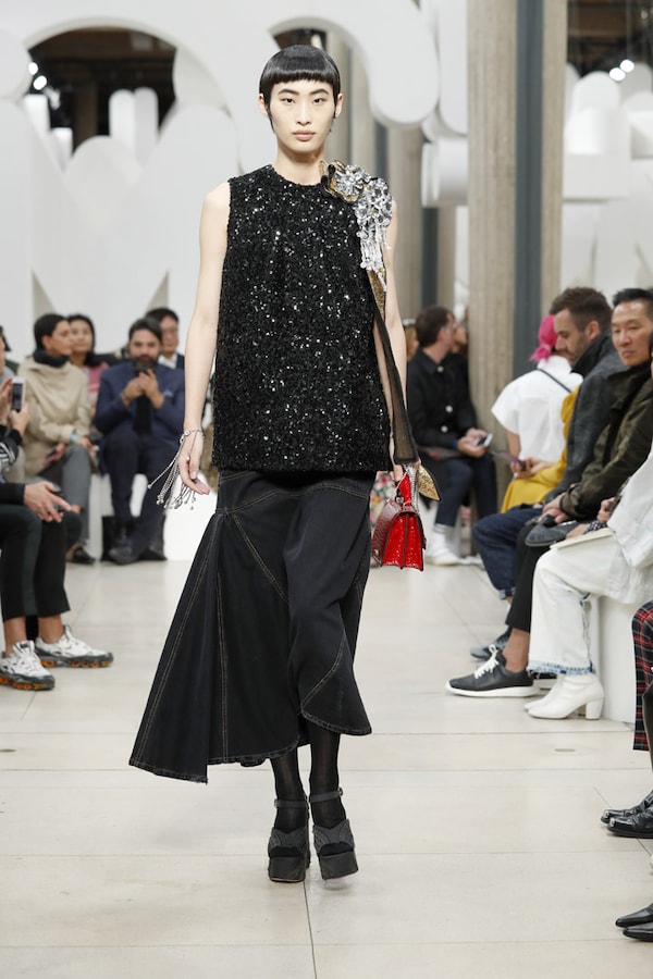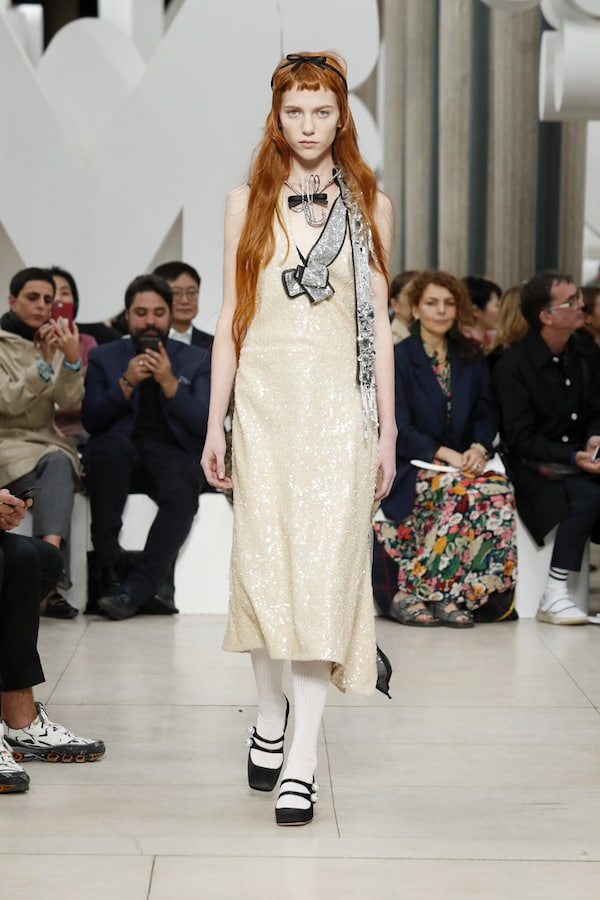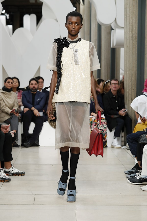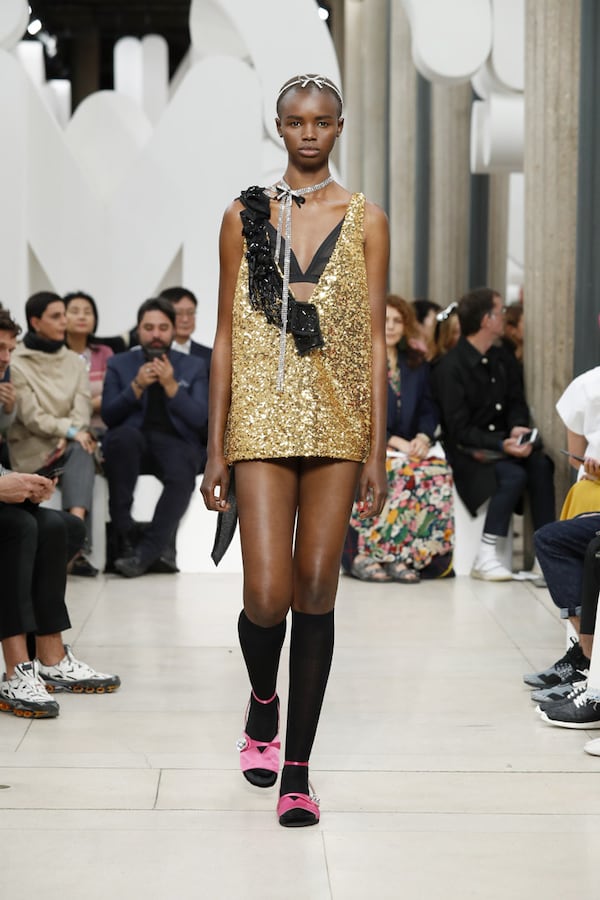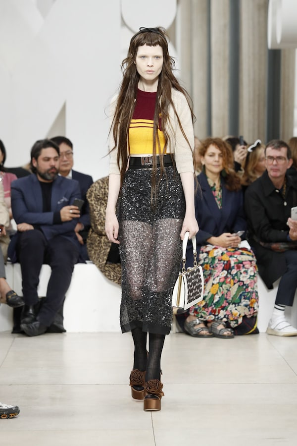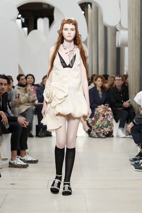 L’espace fait l’effet d’une tautologie : le défilé, au sein du défilé, au sein d’un symbole, au sein d’une marque - le cœur de MIU MIU.