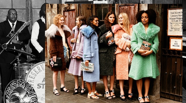 The campaign for Miu Miu, Fall/Winter 2017, realized by photographer Alasdair McLellan, collages New Orleans landscapes and landmarks, from the dripping bayou to the august Preservation Hall. Award-winning actress Naomie Harris and models spanning from new guard (Adwoa and Kesewa Aboah) to super (Kate Moss) are bedecked in this Miu Miu’s fashion compendium, a celebration of clashes in tone and texture.