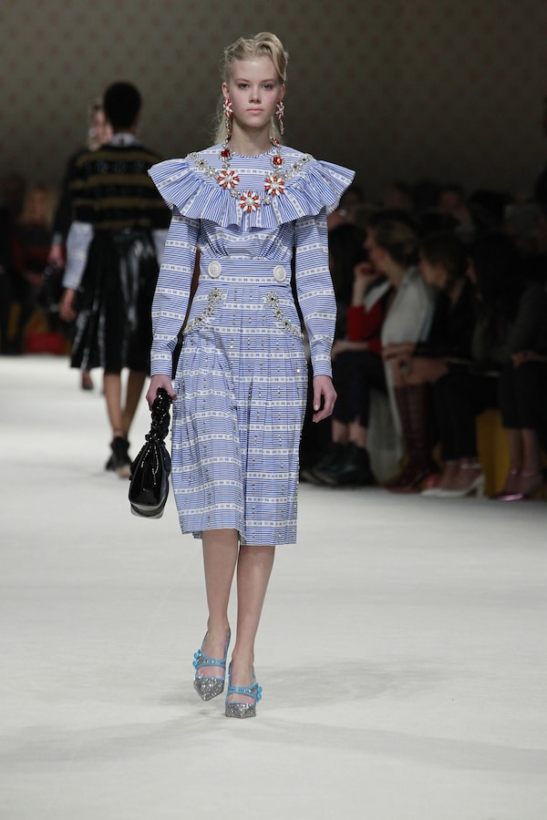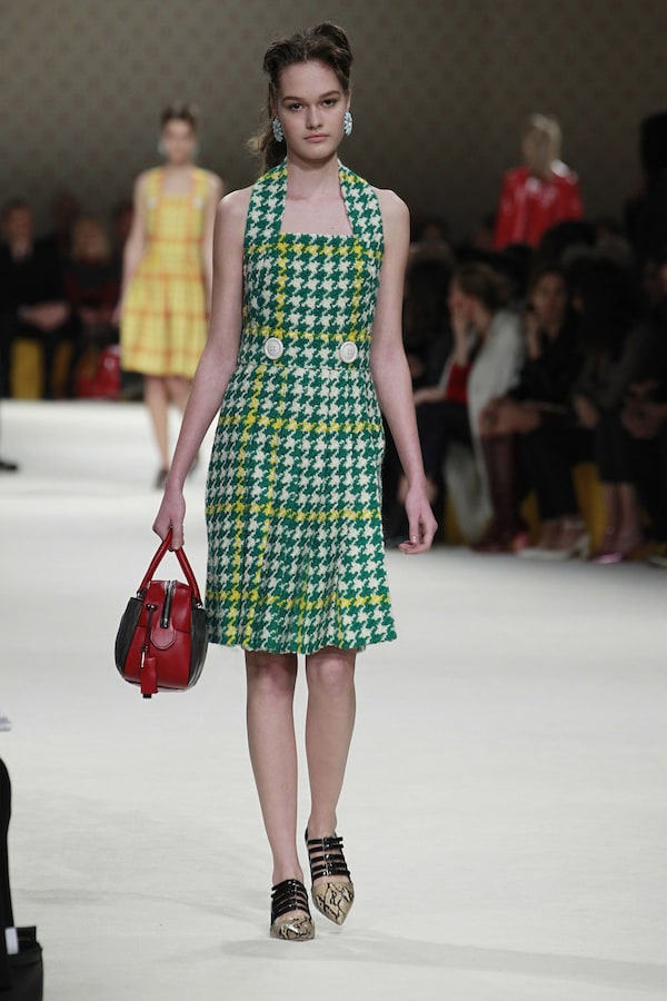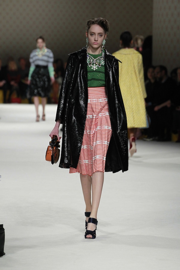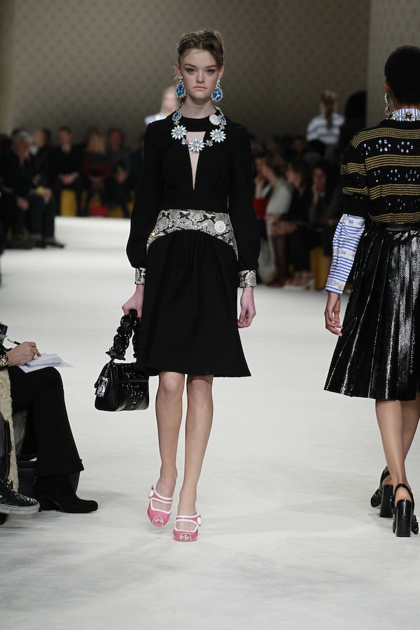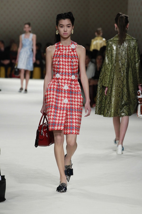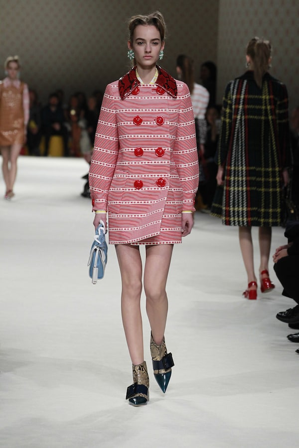 A continuous invasive shape, the installation guides the guests from the entrance of the Palais d’Iena seamlessly into the show space. Miumiu wallpaper and white carpet were used to soften the authority of the volume and give a domestic effect.