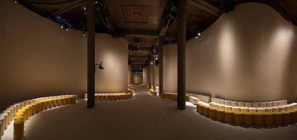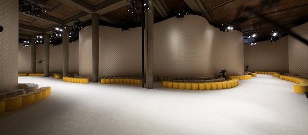 As a counterpart to the rigor of Perret’s architecture, for the FW 2015 catwalk show, AMO has designed a soft and kinetic mass invading the Palais d’Iena.