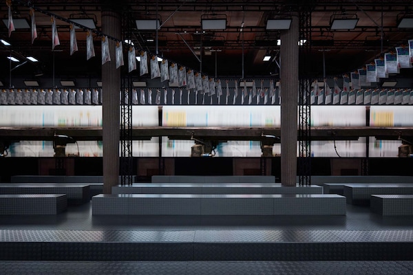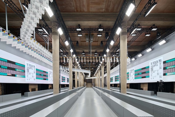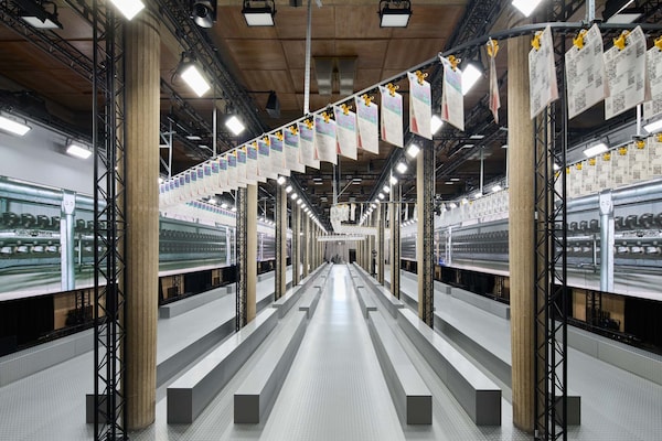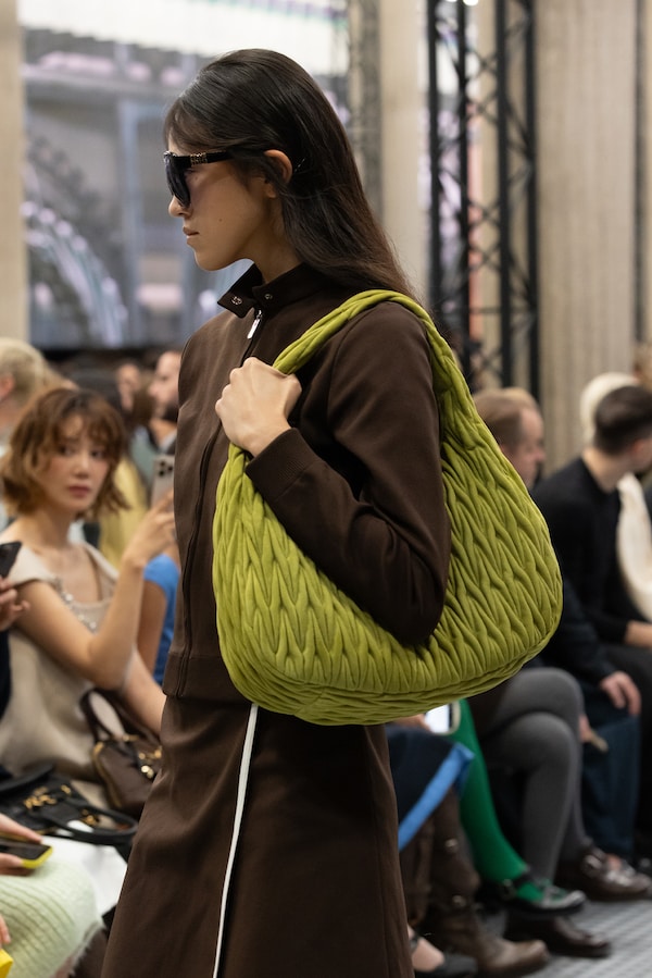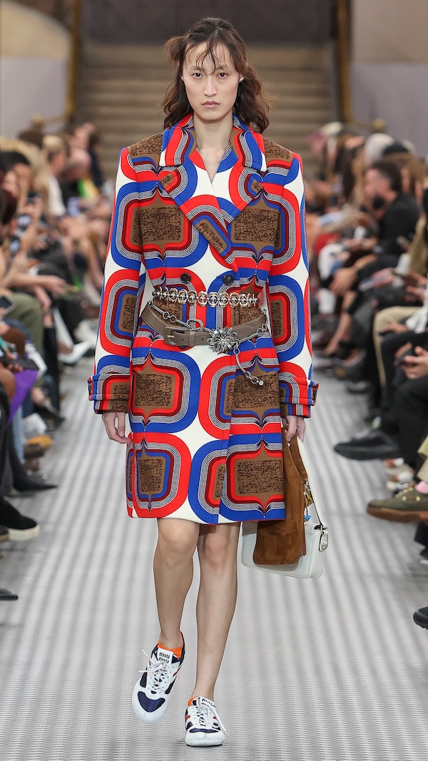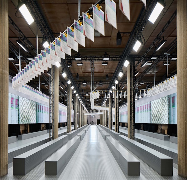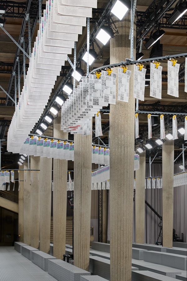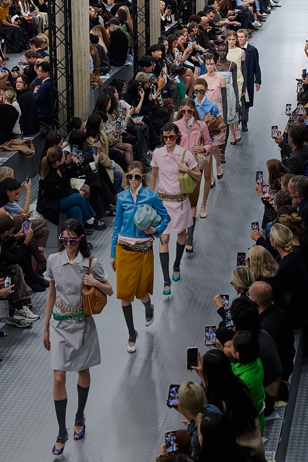 The Spring/Summer 2025 Miu Miu show by Miuccia Prada is a point of embarkation, for a sequence of multidisciplinary events examining the brand’s cultural dialogues with groundbreaking women artists and filmmakers across 13 years. Through the Spring/Summer 2025 collection itself, an intervention by Goshka Macuga for the Miu Miu runway show, and an installation by the same artist at the Palais d’Iéna as part of Art Basel Paris 2024 exploring Miu Miu Women’s Tales and collaborations with artists, Miu Miu investigates its own conversations across the mediums of art, cinema and fashion. Since its inception, the scope of this exchange has been to investigate the experience of vanity, to analyze how women see themselves, through their own gaze.