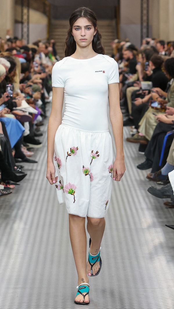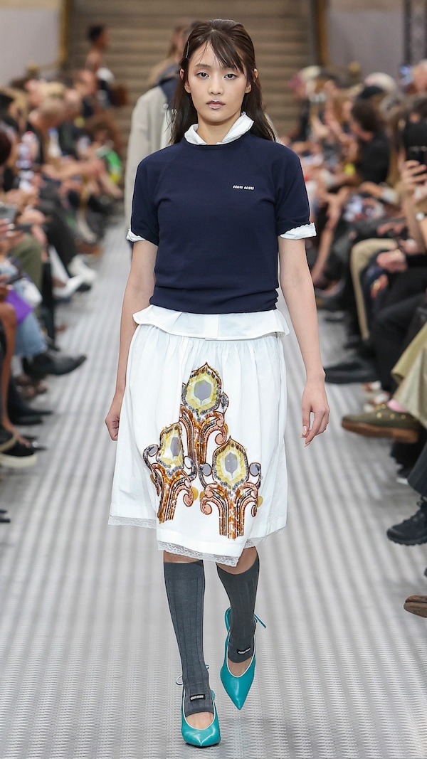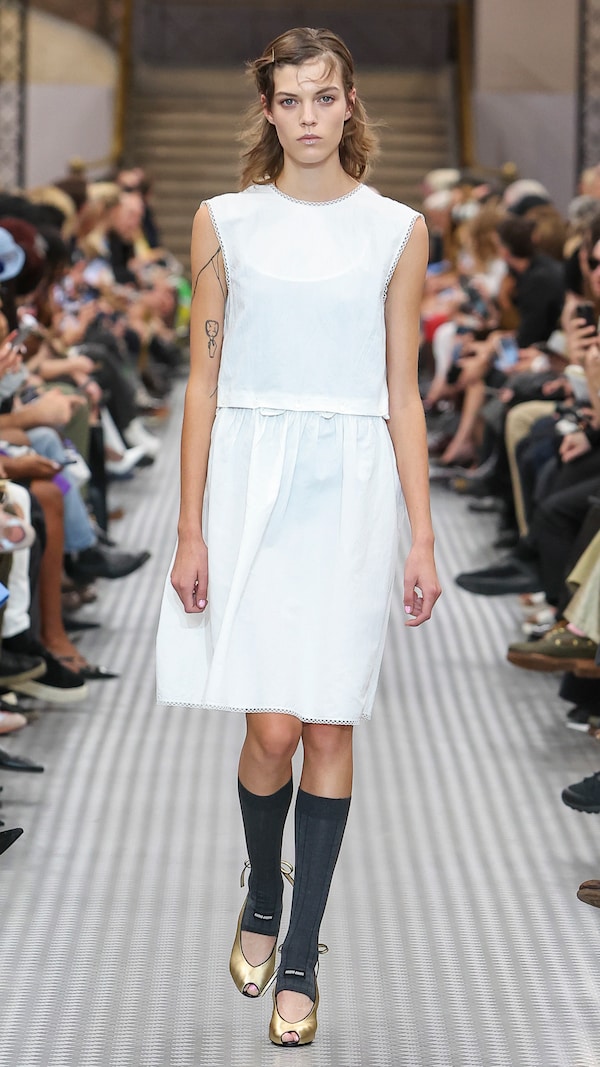 If Fall/Winter 2024 proposed a vocabulary of clothing across a panorama of lived experience the Miu Miu Spring/Summer 2025 collection evolves to examine early youth as a period of absolute truth. Before dissimulation is learned, each individual is honest to themselves, to their ideals. And as a reaction to an era of overstimulation and over-information, simplicity in clothing may offer clarity and precision, and serve as an honest frame of character.