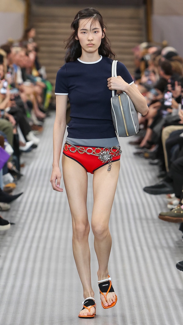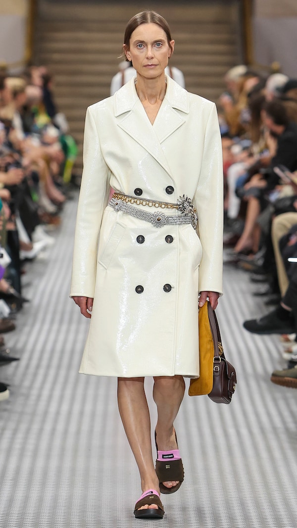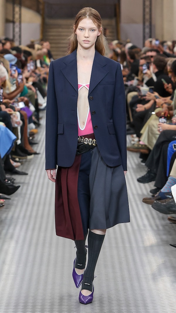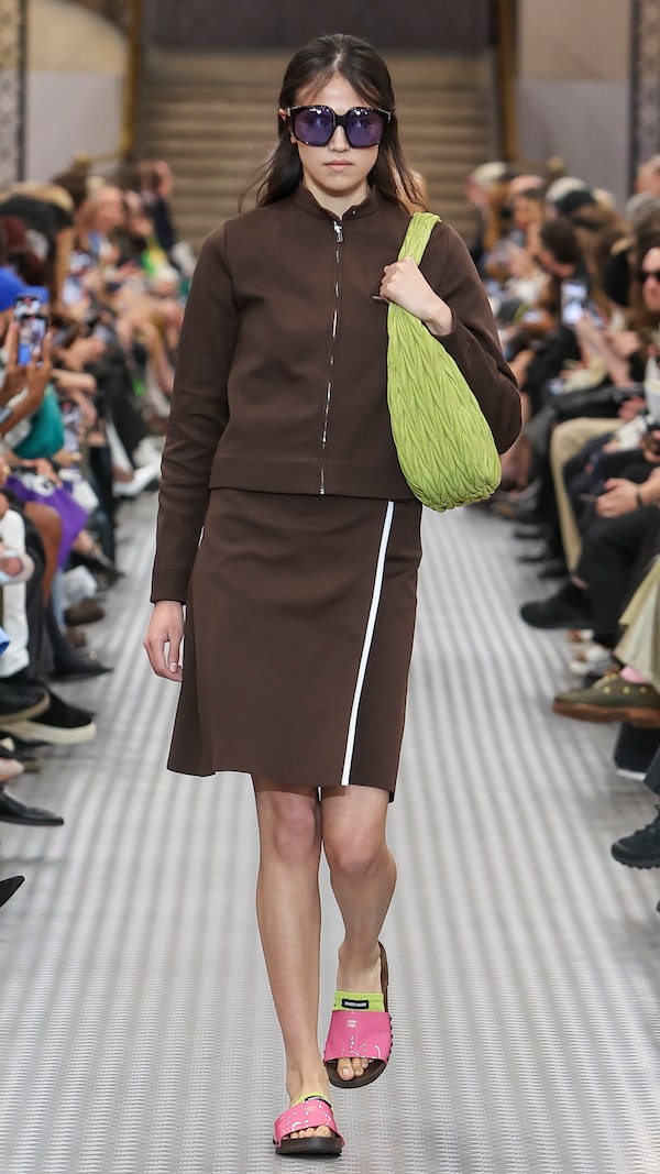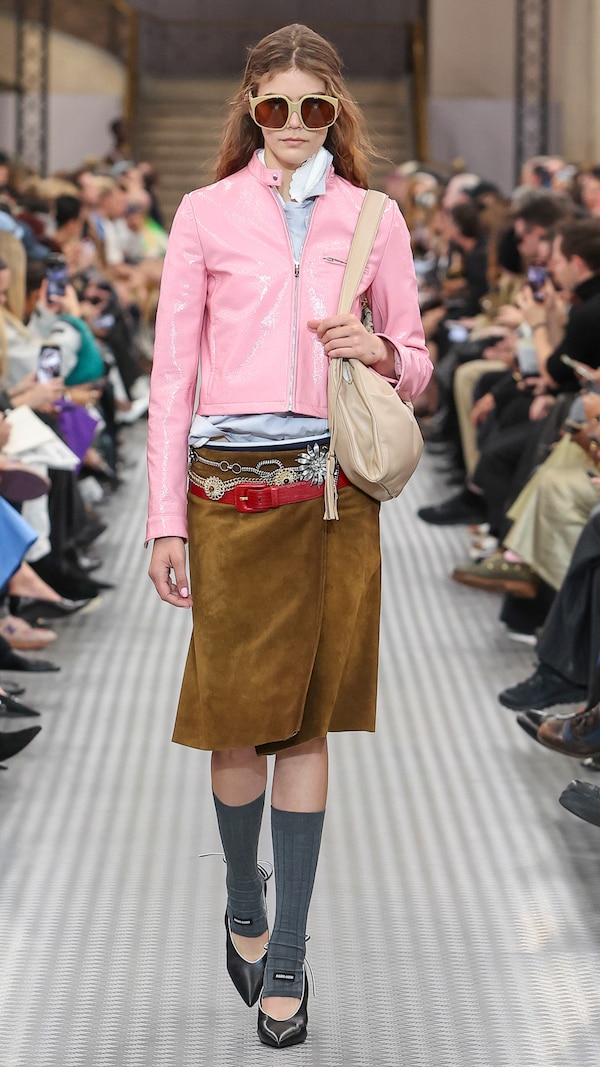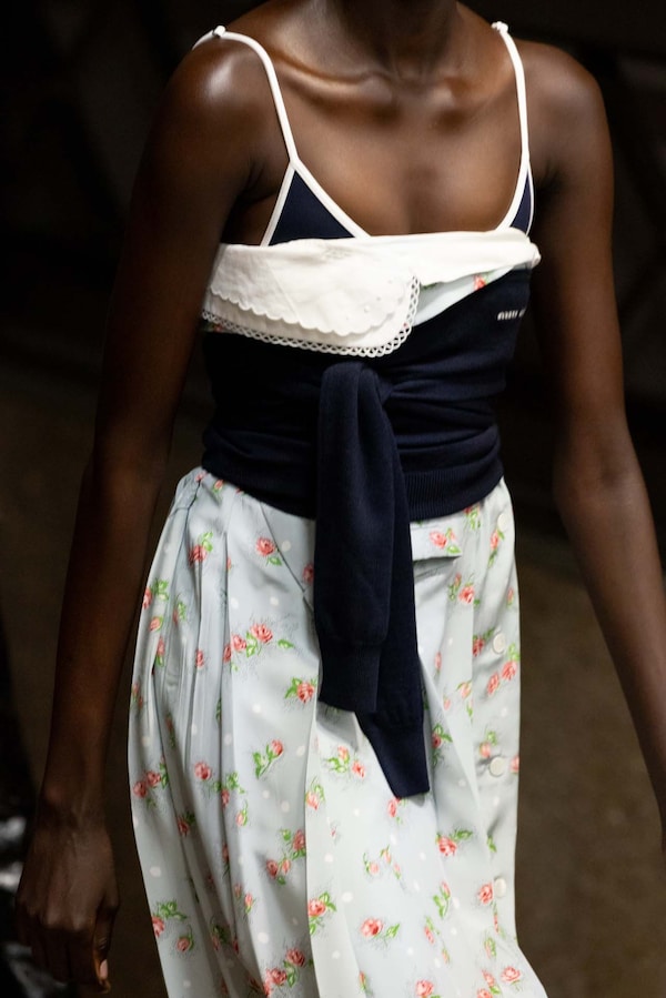 Elements are transposed and combined with a sense of impulse. Things becoming other, their displacement changing their purpose, shifting their truth. Elements shift between pieces, and items that look like nylon are silk. Hyper-classic items stand in contrast, emphasizing the manipulation of normality. They also underline the Miu Miu aesthetic as its own established body of work - a true Miu Miu uniform, gradually established, now fully-realized.