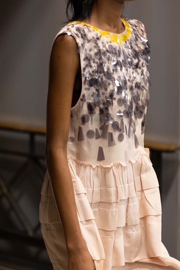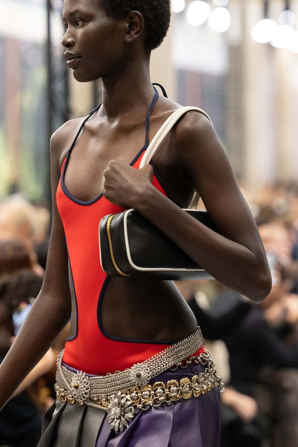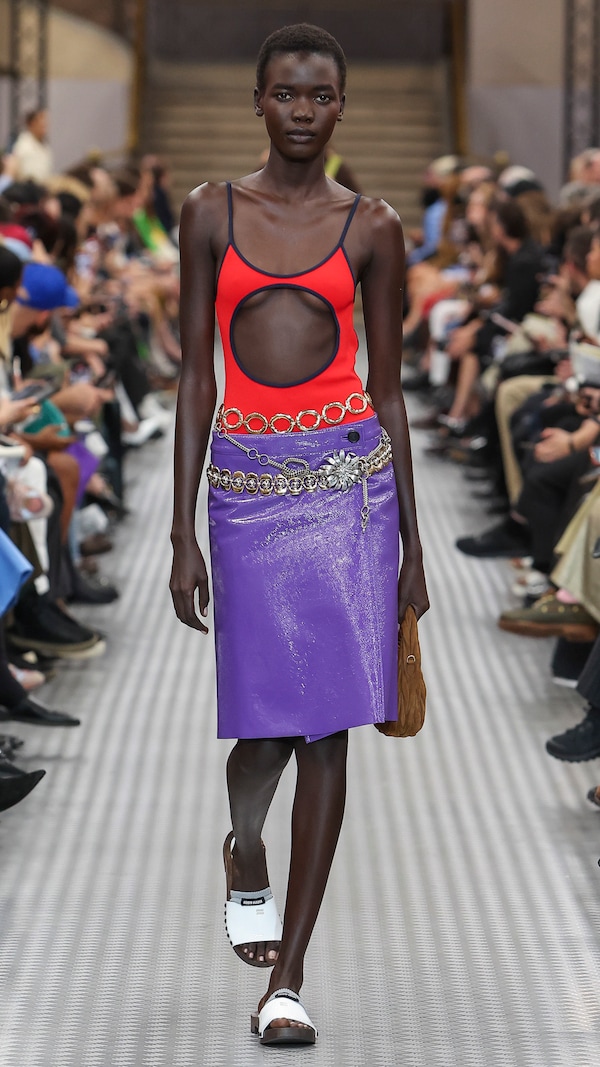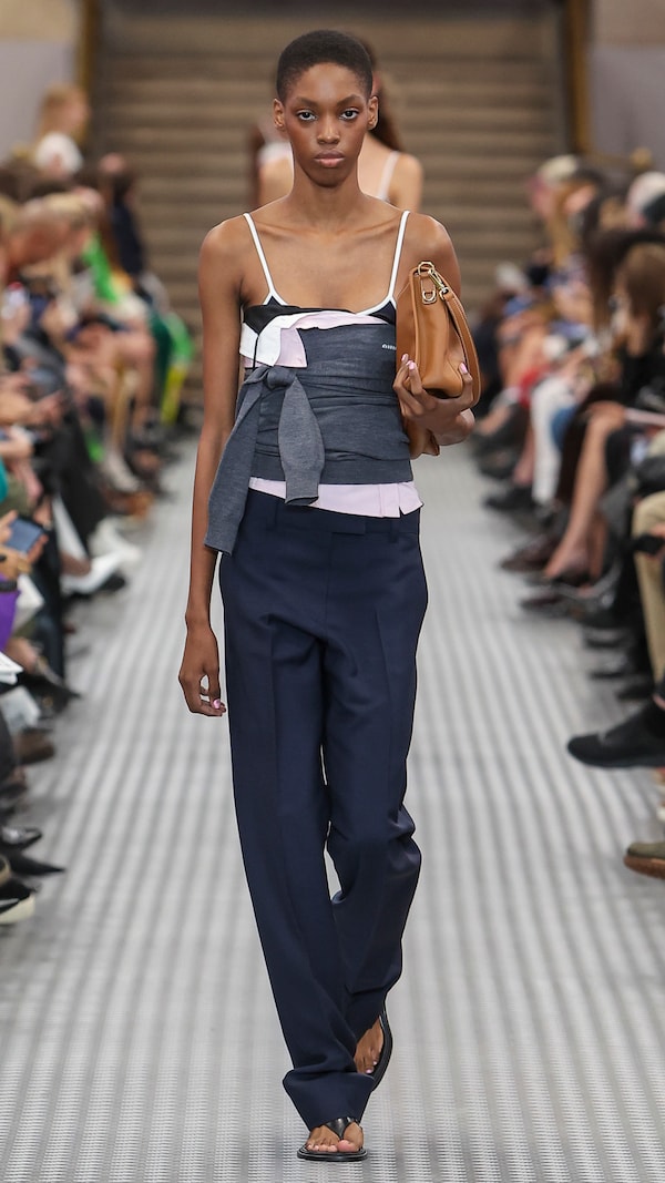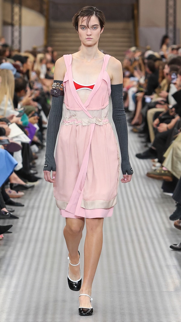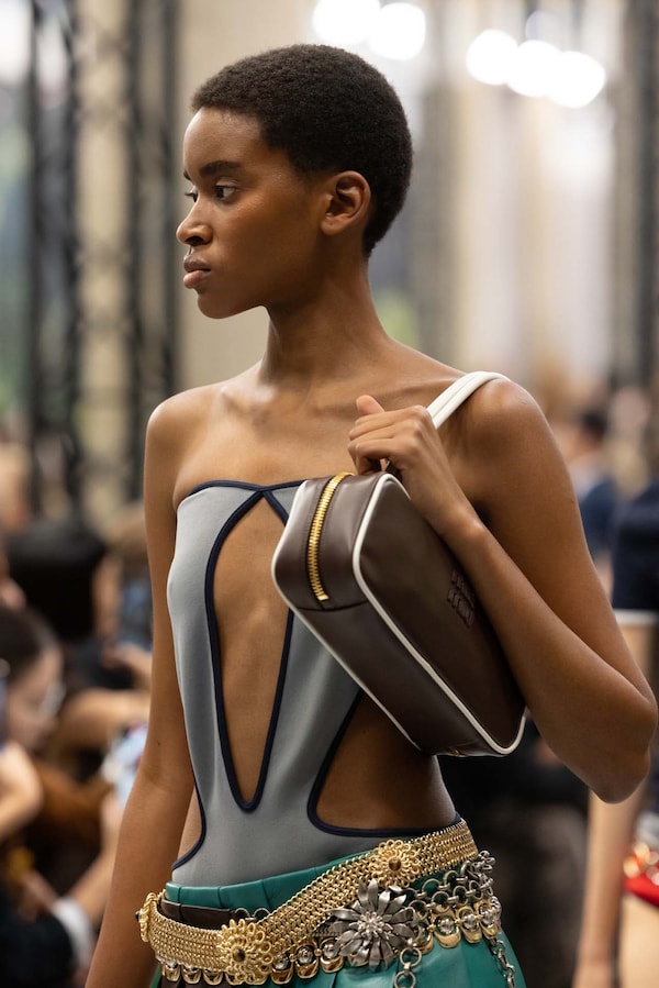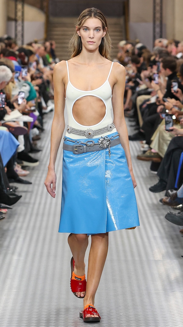 Elements are transposed and combined with a sense of impulse. Things becoming other, their displacement changing their purpose, shifting their truth. Elements shift between pieces, and items that look like nylon are silk. Hyper-classic items stand in contrast, emphasizing the manipulation of normality. They also underline the Miu Miu aesthetic as its own established body of work - a true Miu Miu uniform, gradually established, now fully-realized.