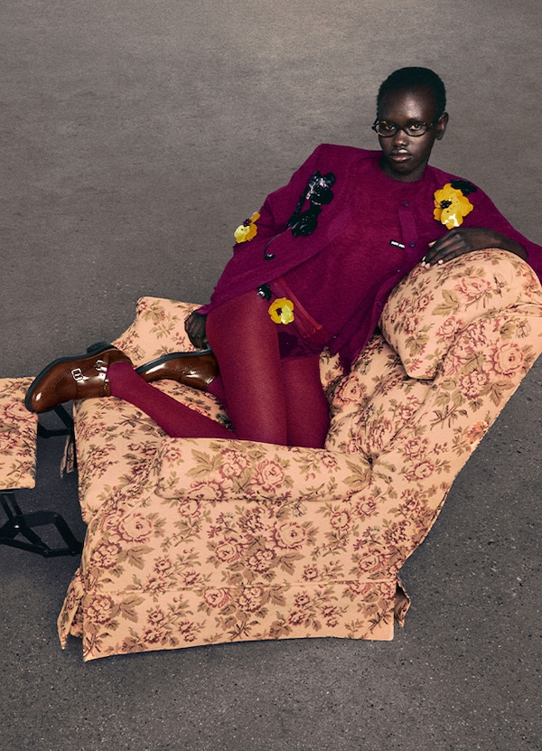 Miu Miu’s signature play between the traditional and the contemporary is upheld. The reassurance of the familiar is at once celebrated and subverted – undone - to create something new.