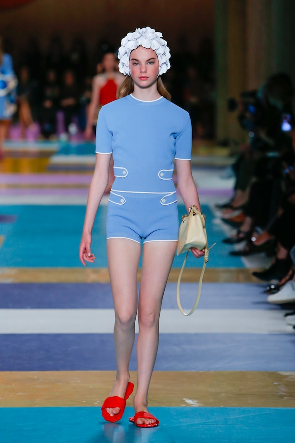 AMO’s design for the 2017 Spring/Summer Miu Miu show makes use of engineered materials to create an artificial summer landscape in Auguste Perret's Palais d'Iena.