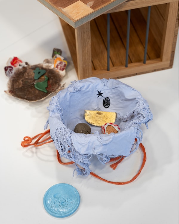 30 Blizzards. explored a cross-section of disciplines and the interrelationship between distinct and divergent mediums when placed in proximate dialogue. The exhibition was physically structured around a new counterpoint between five sculptures and five newly conceived videos. Each work obliquely referenced a chronological moment in life—childhood, community, sexuality, interiority, and loss—tracing experiential detail through a series of successional chapters. These paired relationships provided a framework for five distinct monologues, with the voice of each video serving as a crucial narrative punctuation within the broader, more amorphous libretto structure of the performance.